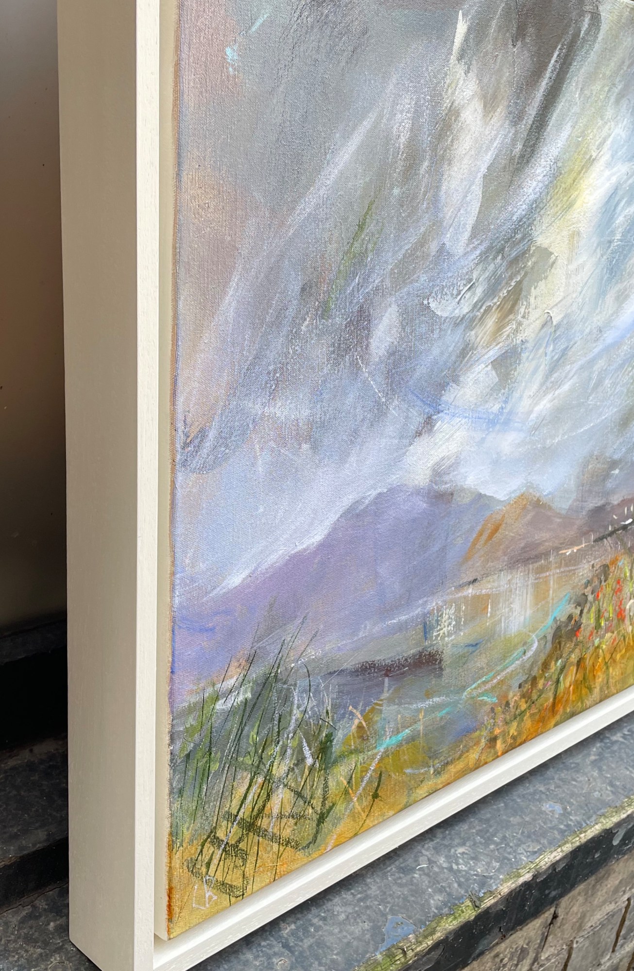 An atmospheric statement landscape painting perfect above a mantelpiece or dresser in a living room.