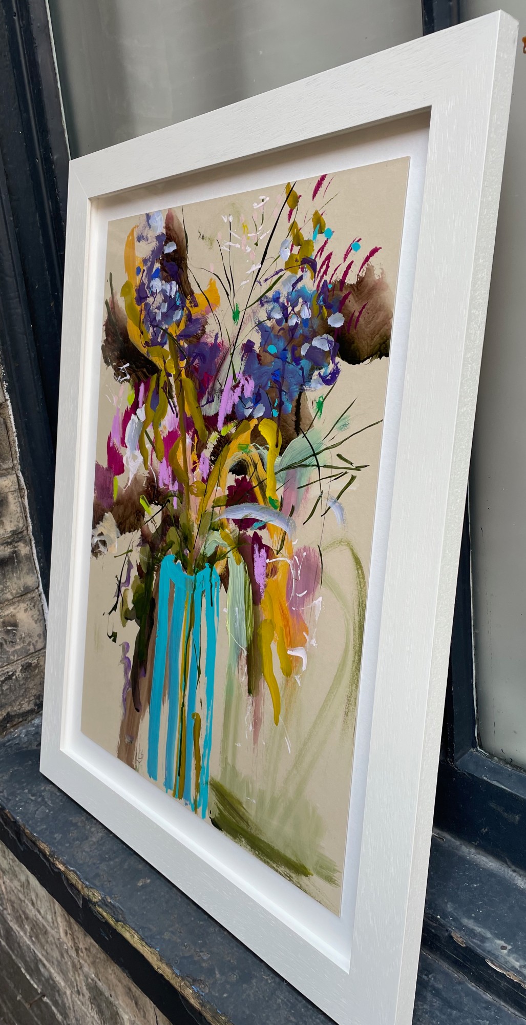 "So flashy in a striped vase, I love the exuberance of mad blooms."
