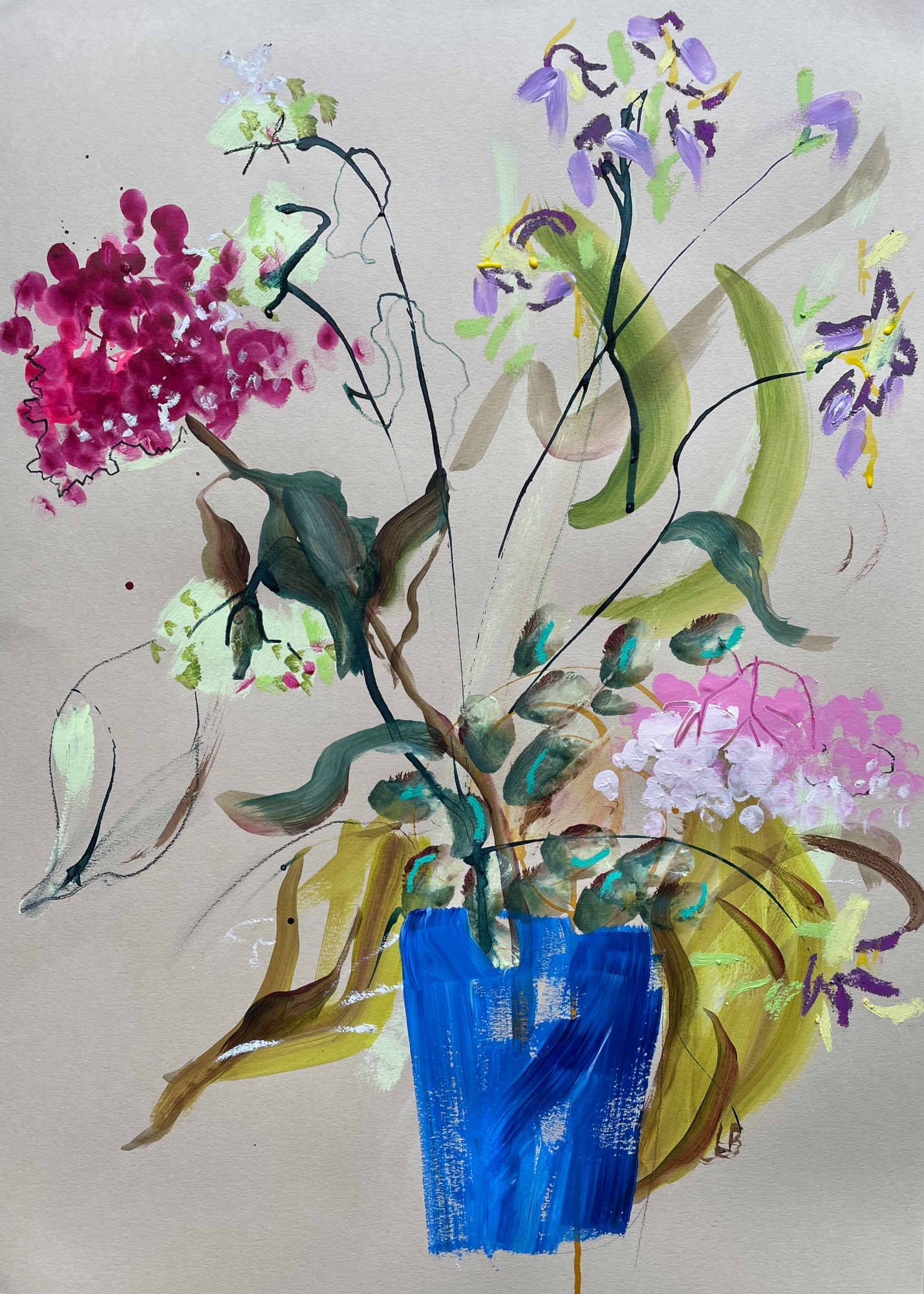 Acrylic, Ink, Gouache, Oil Pastel and Graphite on Buff-toned Paper