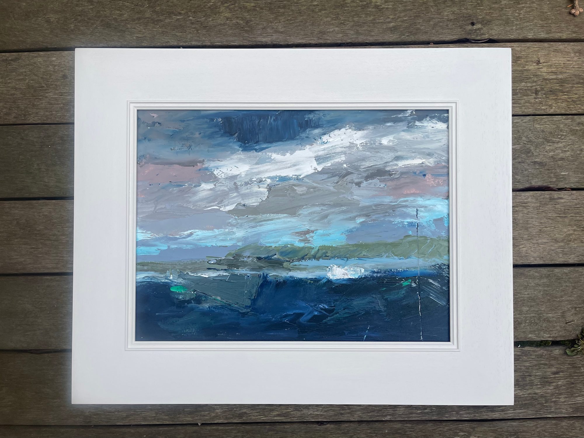 This painting is made of thick, lush oil paint in deep tones expressing the dark blues of Loch Lomond.