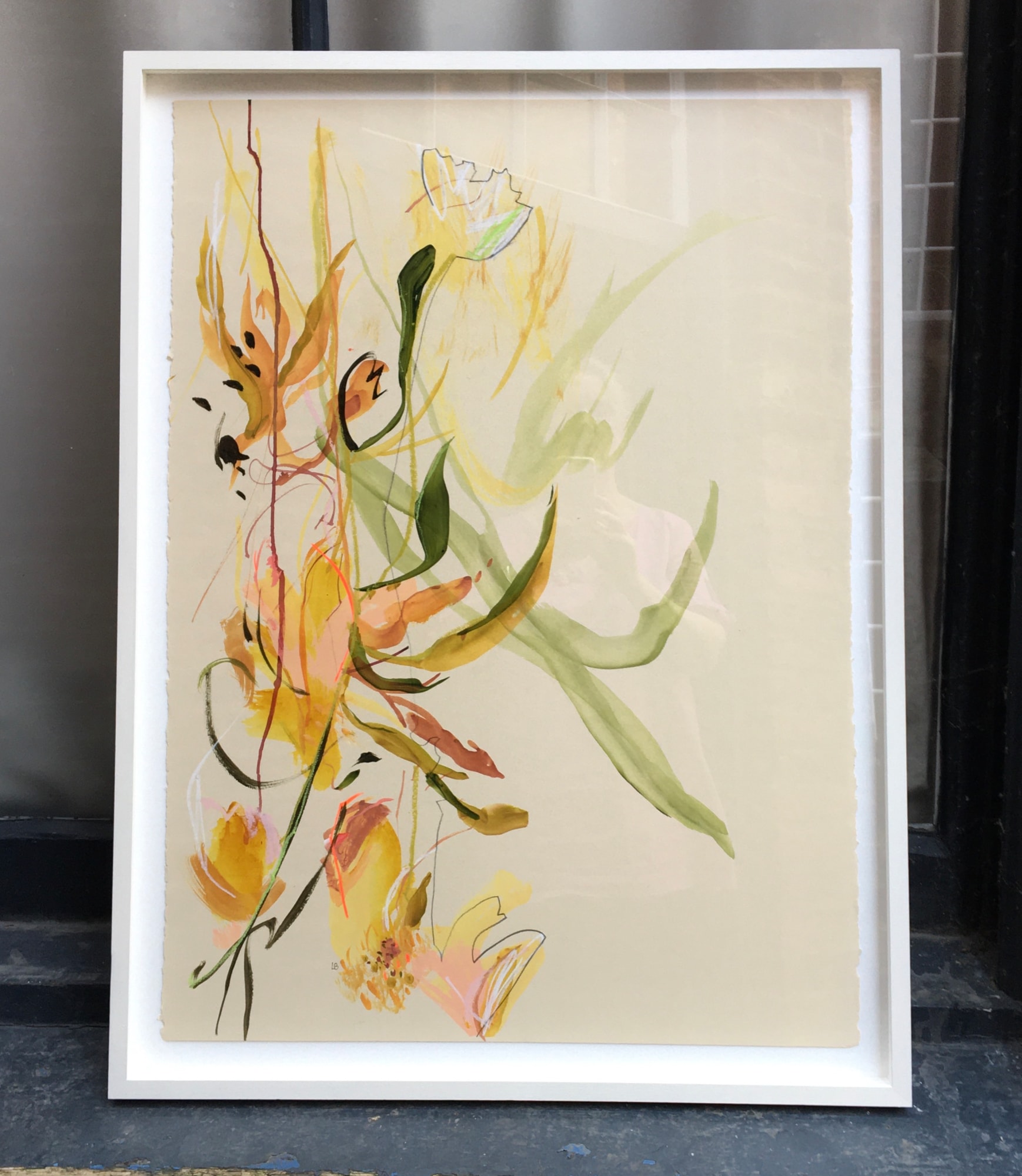 Botanical contemporary painting expressing fading peonies - one of a pair of paintings