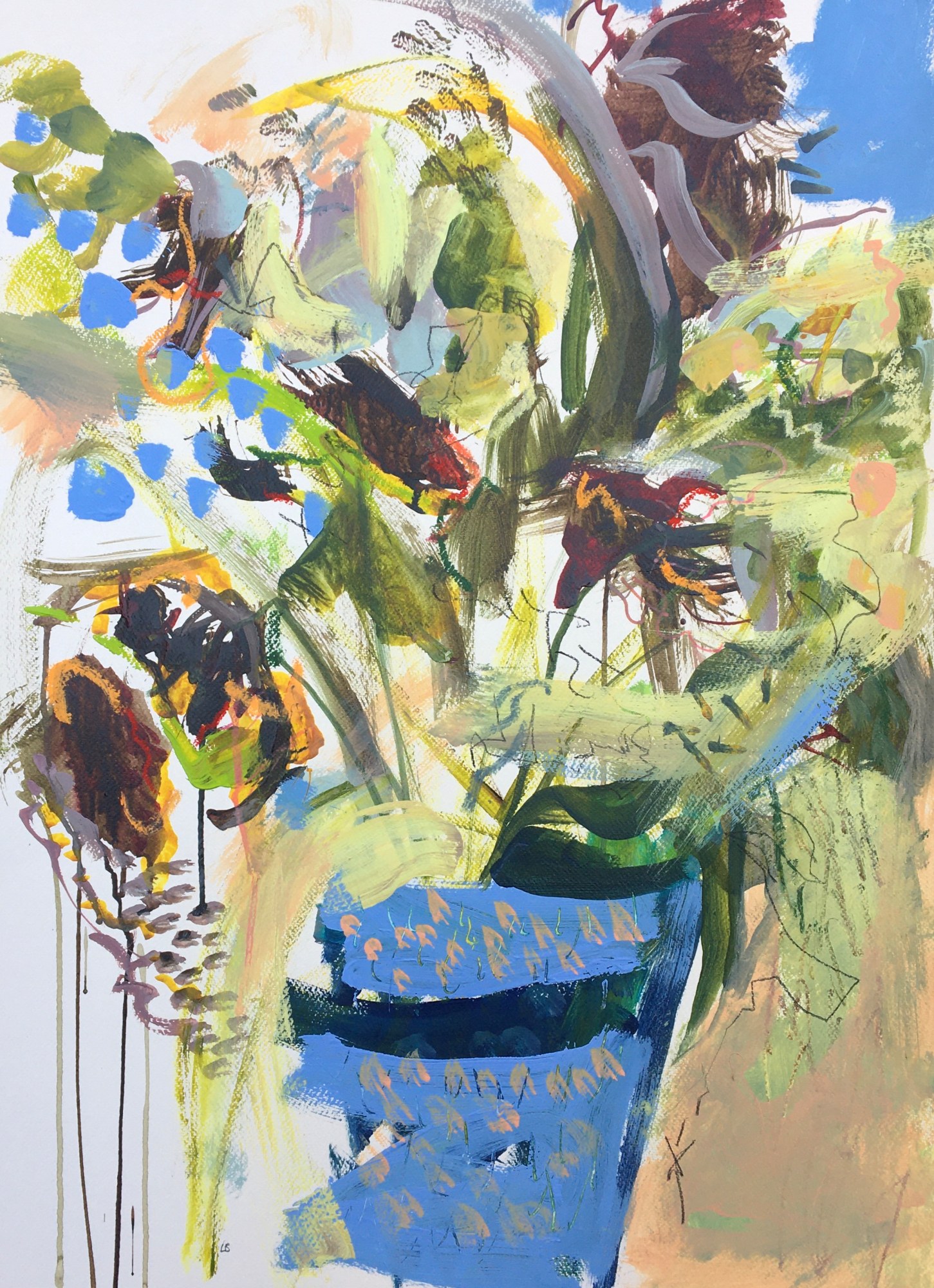 "Often fading flowers can be even more beautiful. And I love my blue pot." Lesley Birch