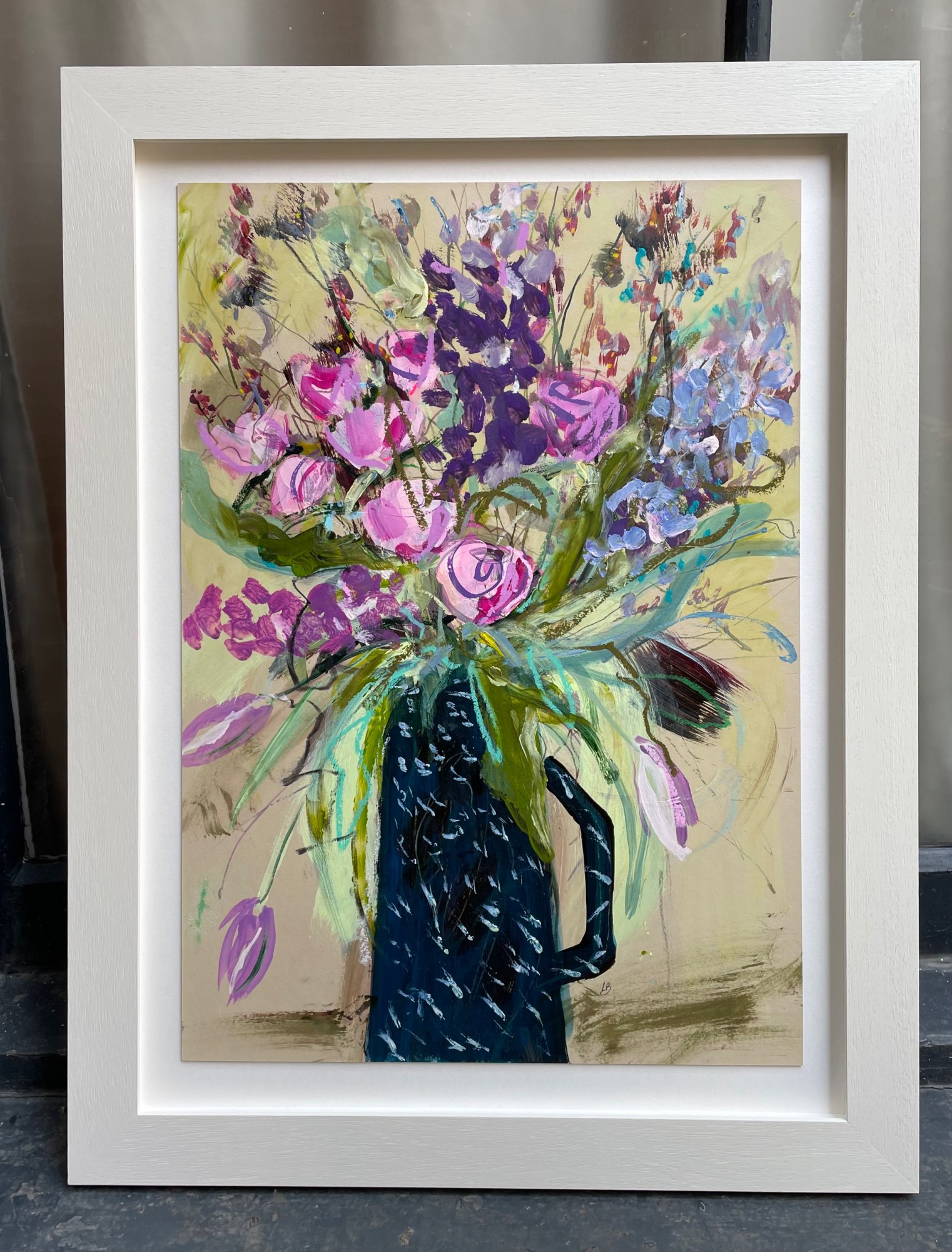 "Roses, Statice, Stocks and a few tulips in my favourite jug. Sometimes they seem to stand to attention." Lesley Birch 2022