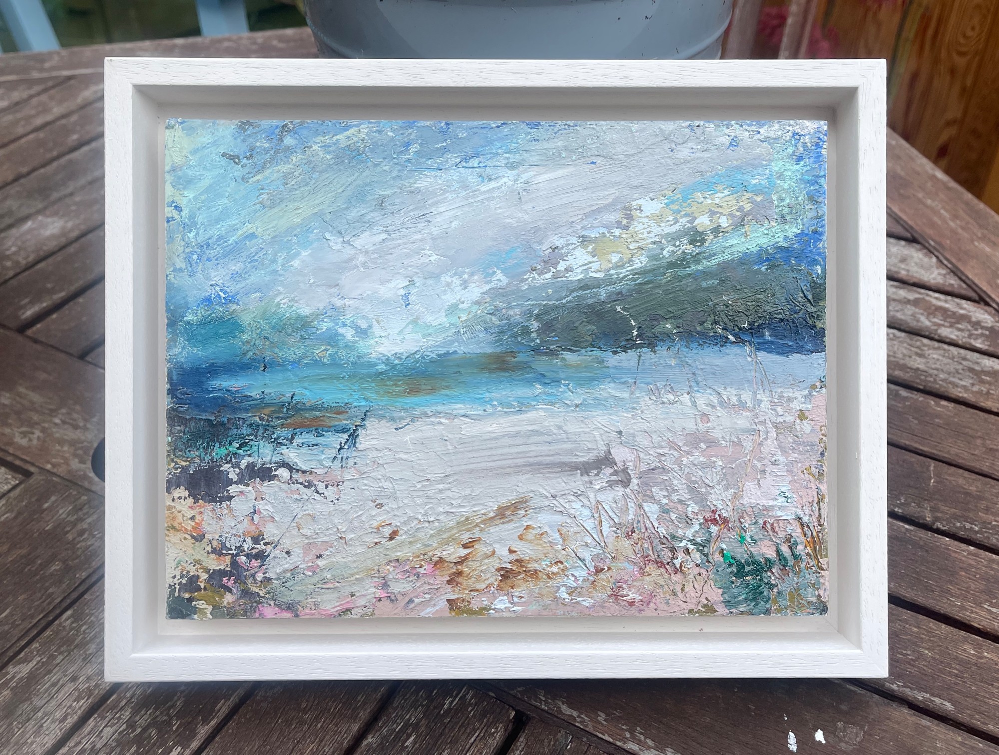 Rugged sands on the loch - a beautiful painting in lush oil with texture - expressing the ruggedness of a Scottish sea loch shore.