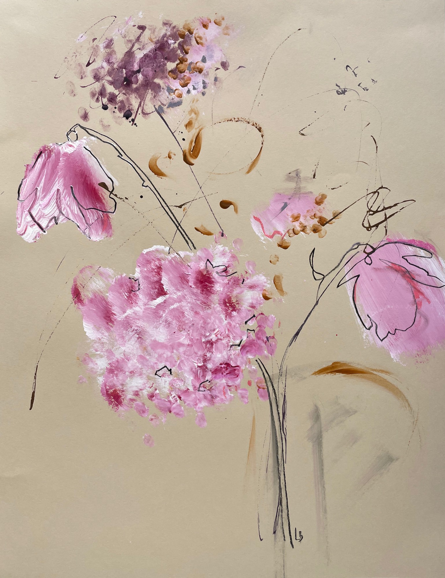 Original painting using Acrylic, Ink, Gouache, Oil Pastel and Graphite on toned paper