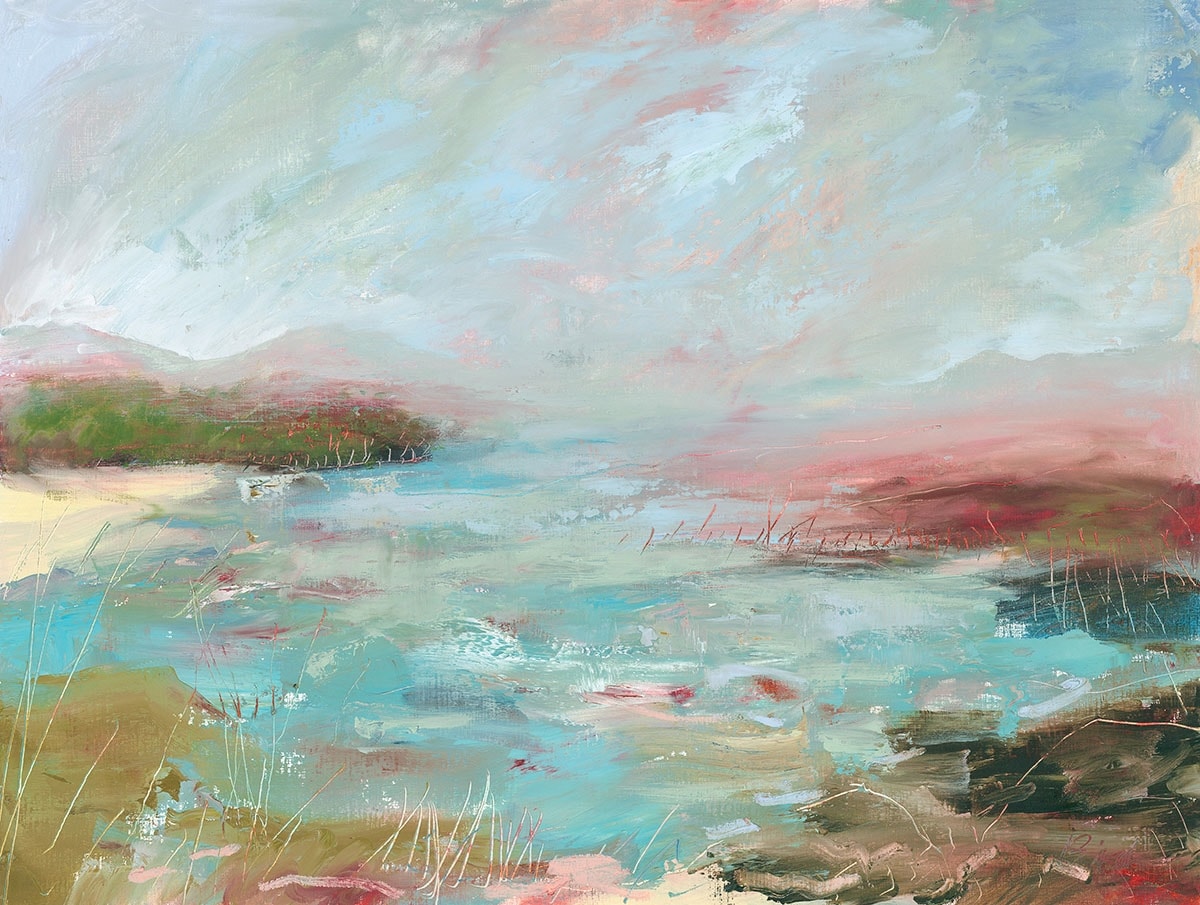 A pale turquoise sea in an airy inlet with just a hint of headlands - memories of misty Scotland.