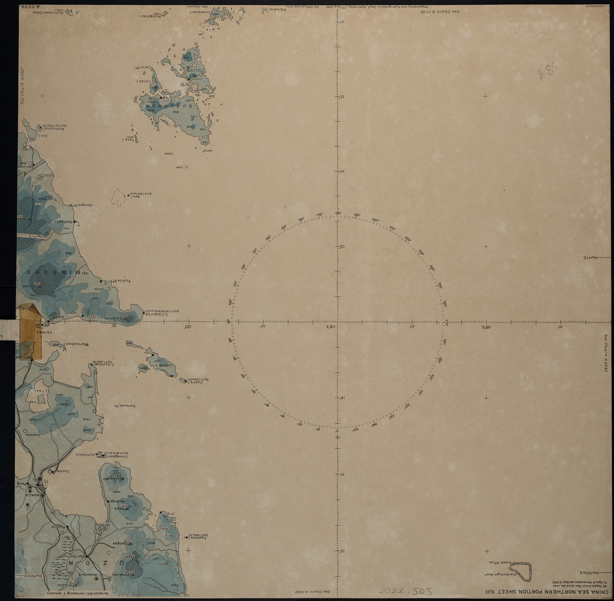 - Black ink drawing on the back of a vintage sea chart
