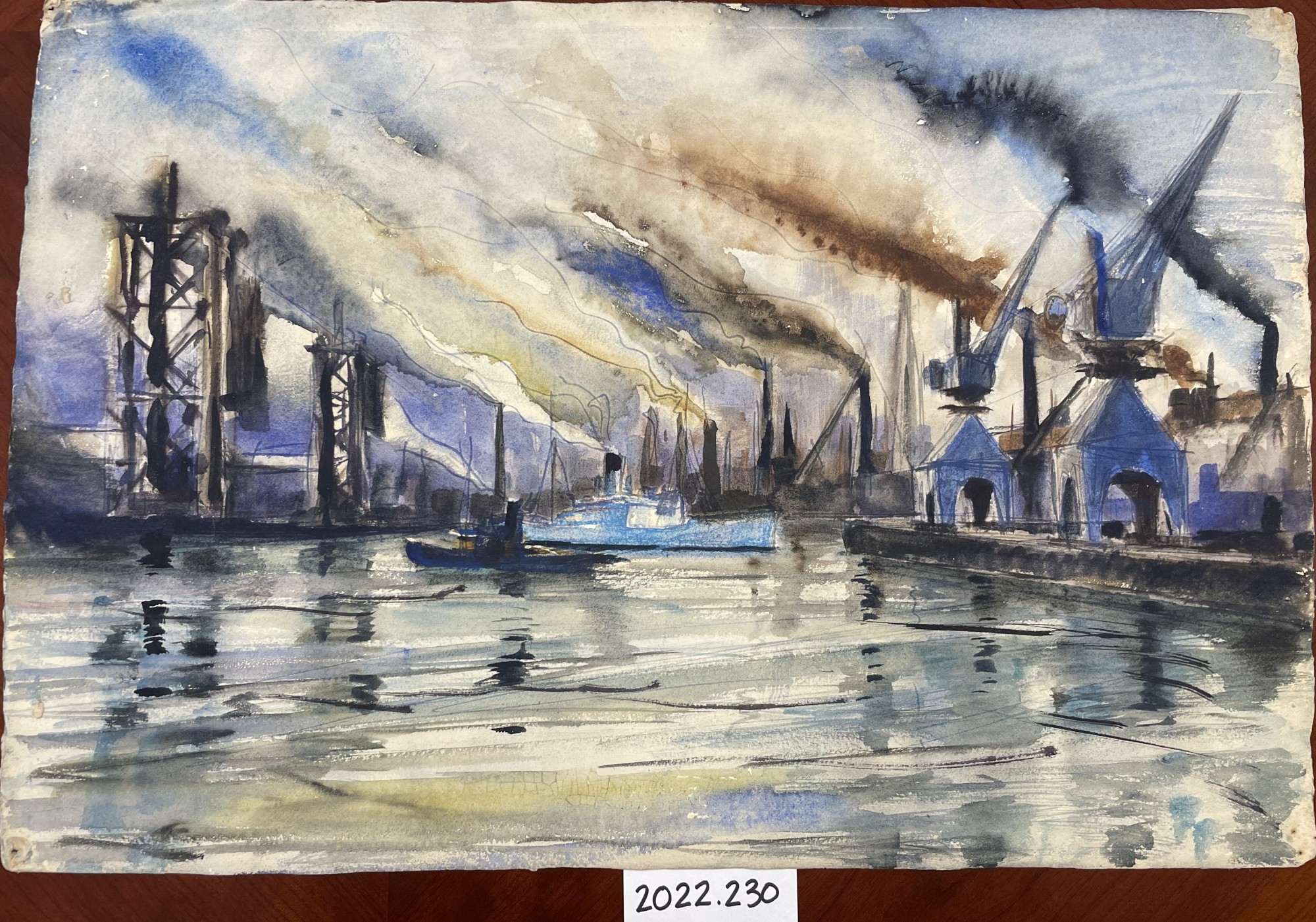 - Untitled (Harbor Scene with Factory Smoke Stacks), ca. 1940s