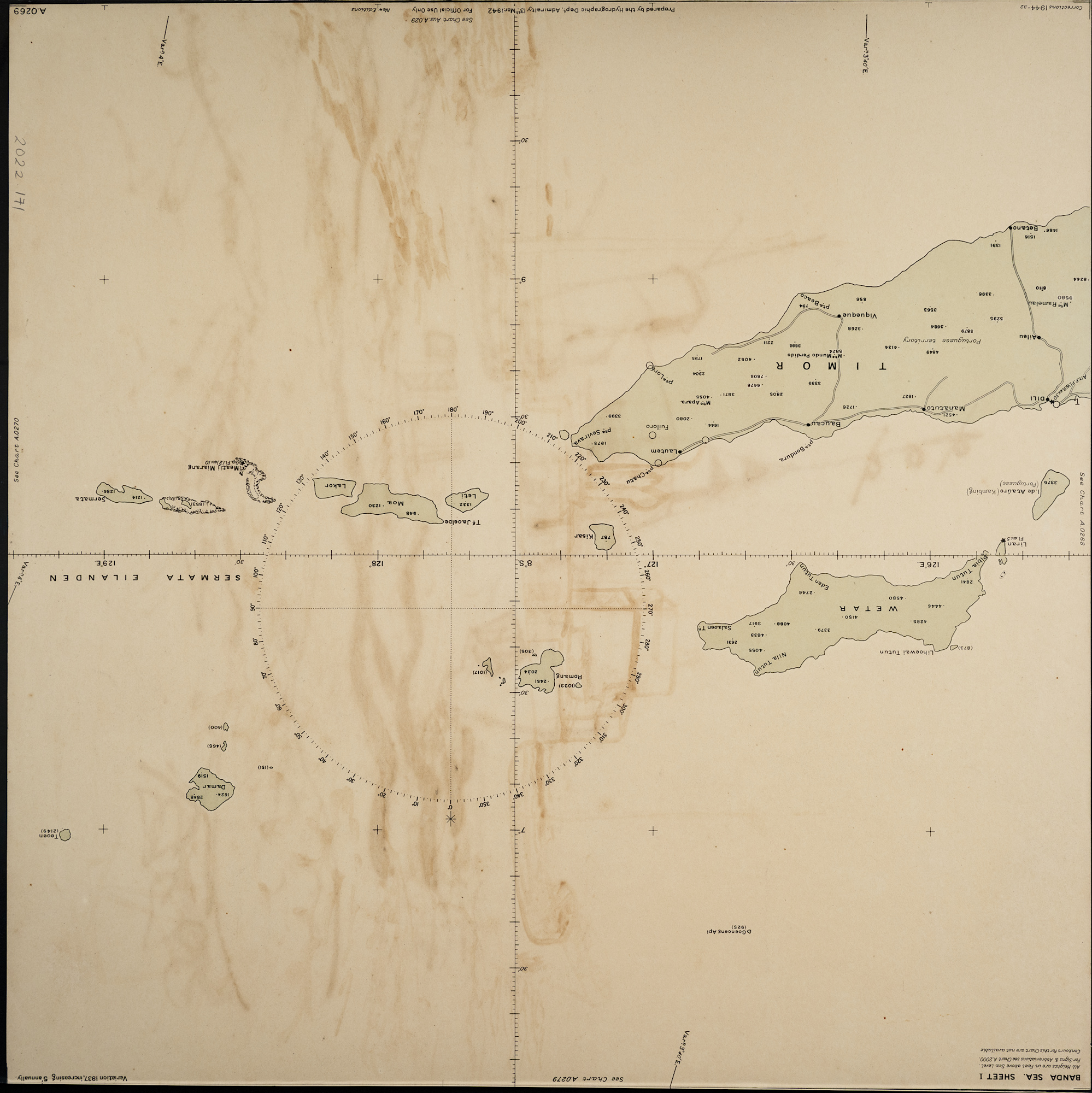 - Blank ink drawing on back of vintage sea chart