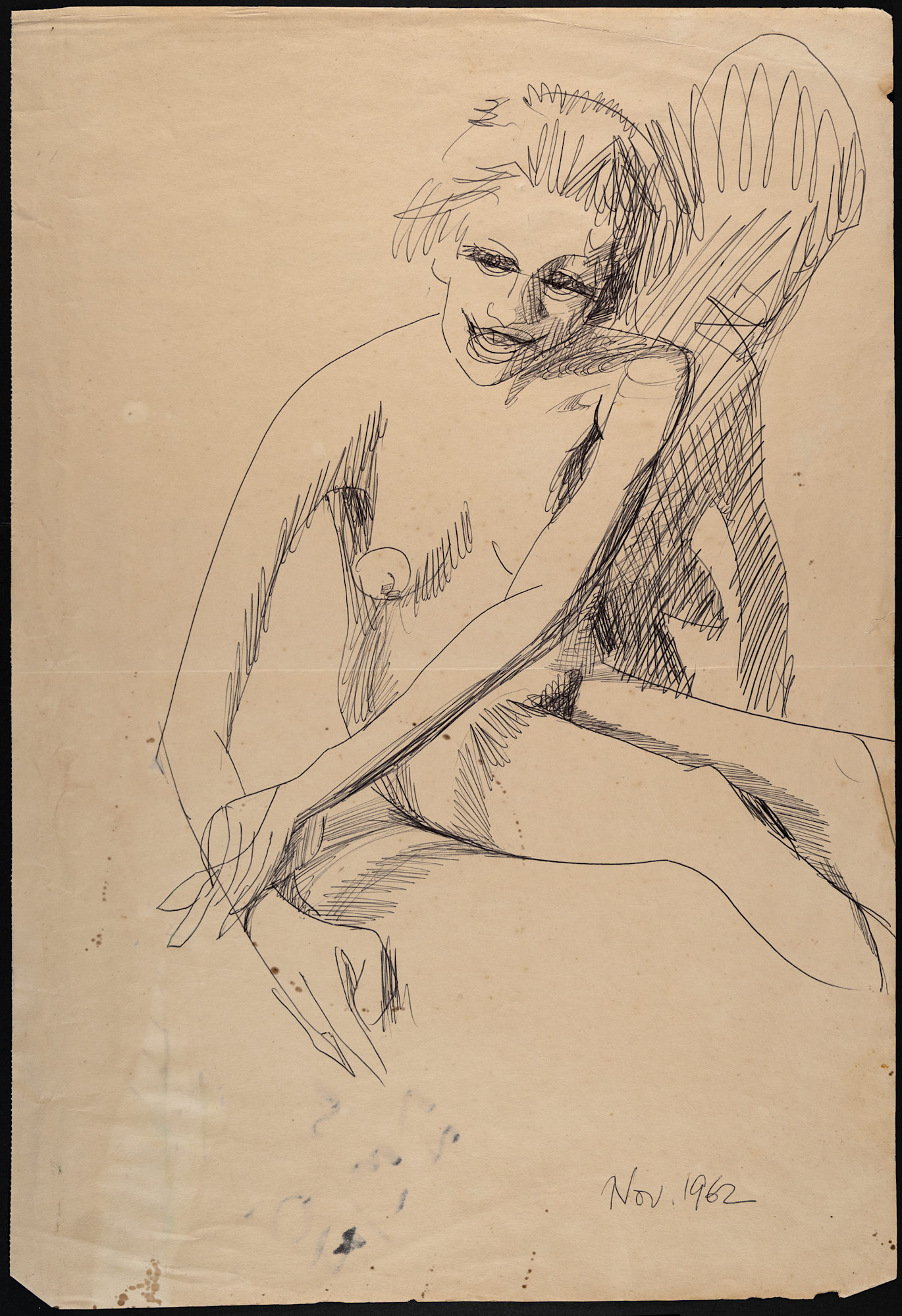 - Attribution: Michael Lester (Michał Leszczyński), 1906-1972, Polish, Untitled (Seated Nude/Peking Garden Storefront), November 1962, Ink on paper, private collection, Chevy Chase, Maryland, © Garlandstone Arts, LLC. 2022.369a-b