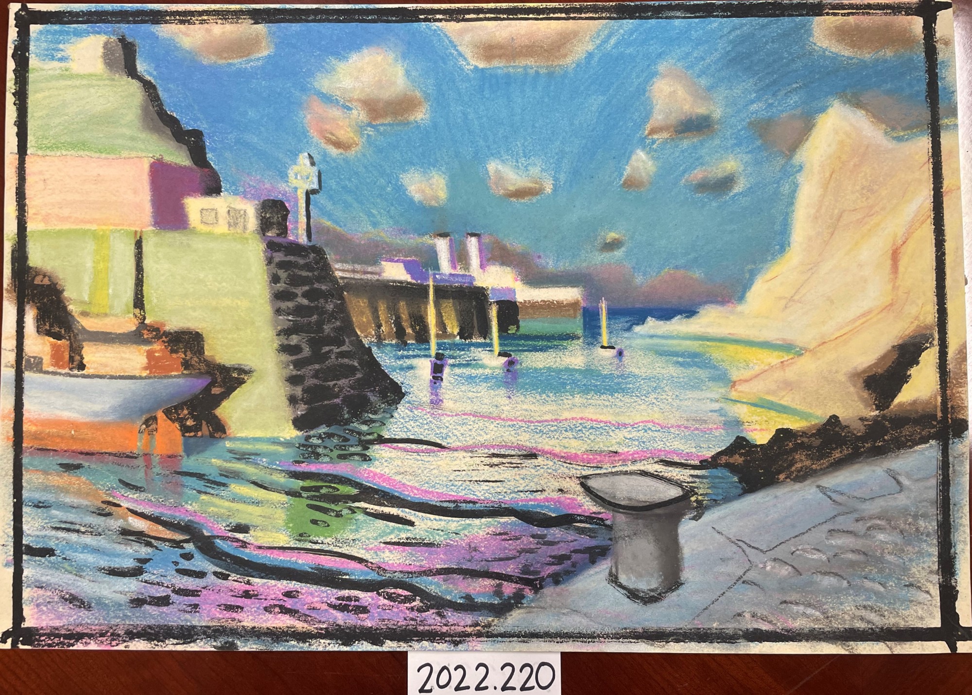 - Attribution: Michael Lester (Michał Leszczyński), 1906-1972, Polish, Untitled (Ships in a Harbor), ca. 1940s-1950s, pastel and black ink/paint on paper, private collection, Chevy Chase, Maryland, © Garlandstone Arts, LLC. 2022.220
