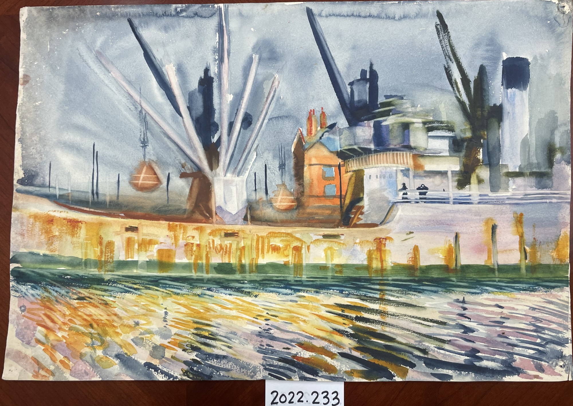 - Attribution: Michael Lester (Michał Leszczyński), 1906-1972, Polish, Untitled (Starboard Ship View), ca. 1940s, watercolor on paper, private collection, Chevy Chase, Maryland, © Garlandstone Arts, LLC. 2022.233