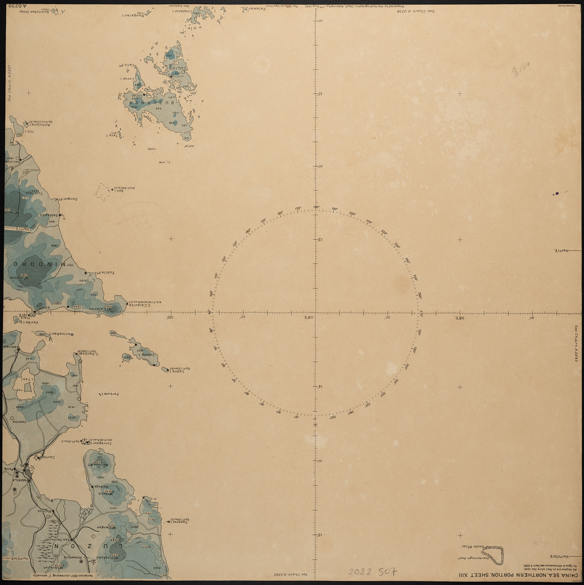 - Attribution: Michael Lester (Michał Leszczyński), 1906-1972, Polish, Untitled (Topless Woman with Eye Study), ca. 1950s-1960s, black ink drawing on the back of a vintage sea chart, private collection, Chevy Chase, Maryland, © Garlandstone Arts, LLC. 2022.507