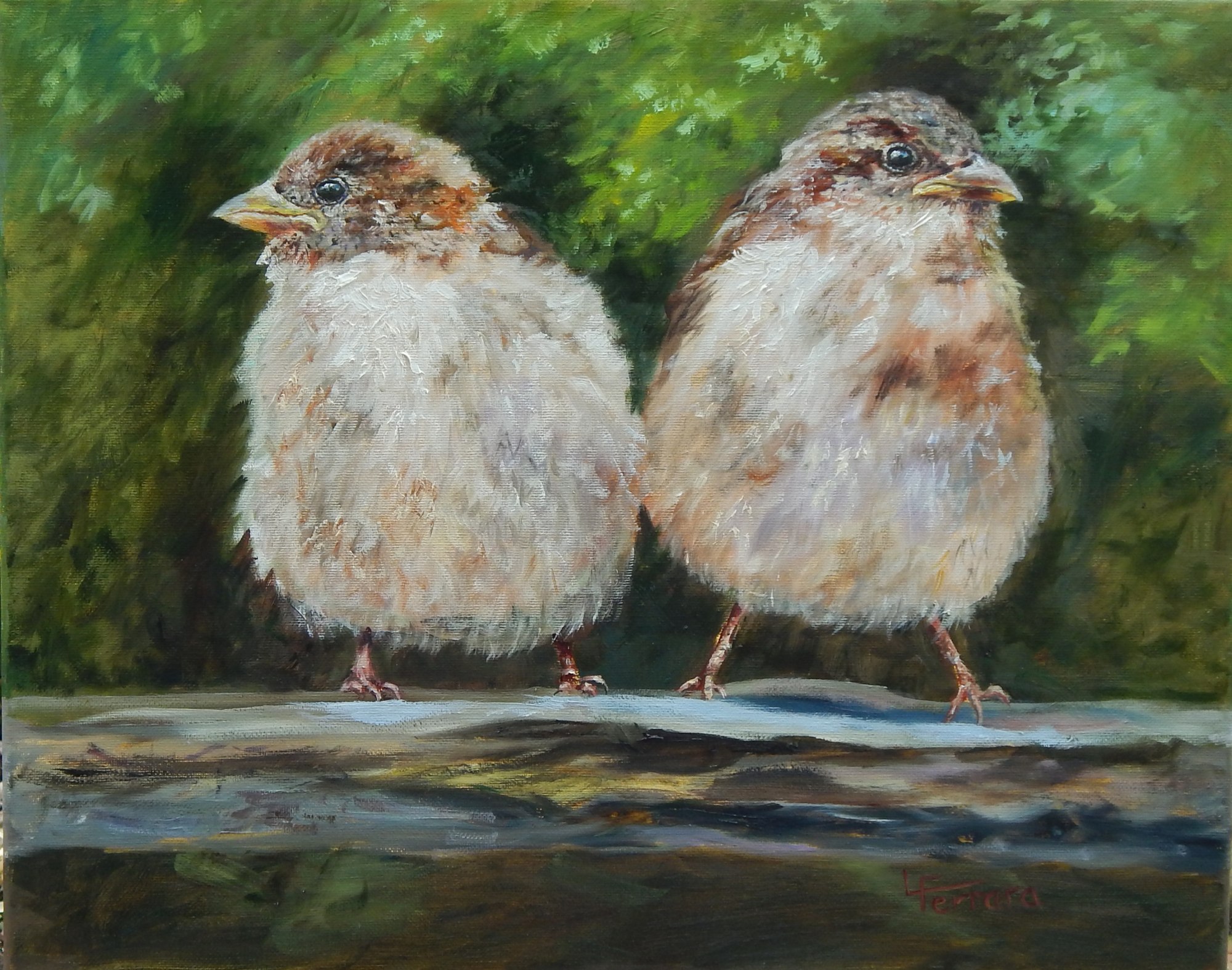 In this painting of two birds, I saw a metaphor for a relationship. They’re perched on the same branch but looking in opposite directions, symbolizing unity and individuality. It’s a visual representation of togetherness despite different perspectives, capturing the balance and connection in their subtle, shared space.