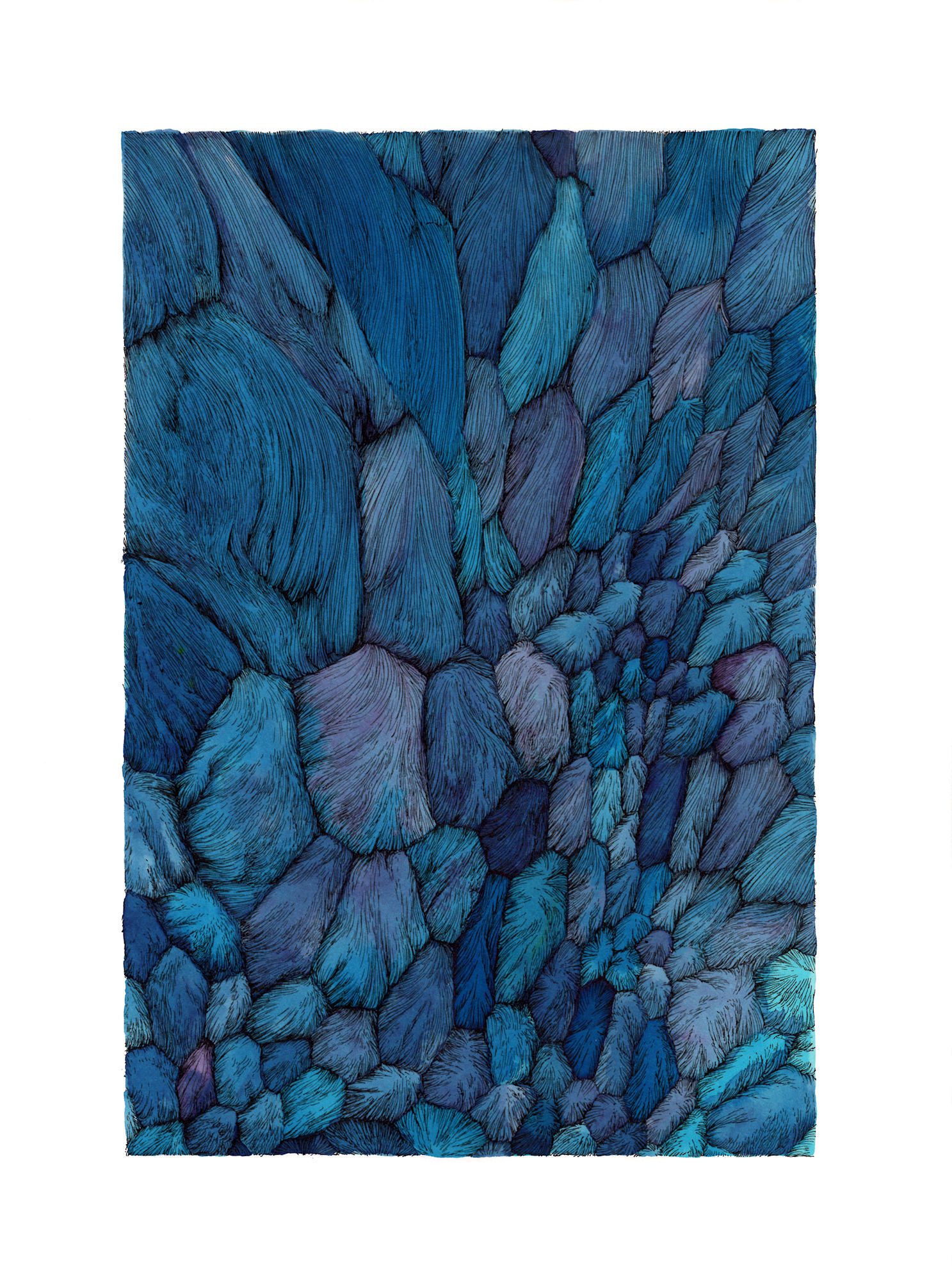 Technical pen and ink on hot press paper, watercolor ink, acrylic ink