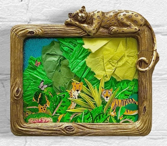 paper, glue, and salvaged frame