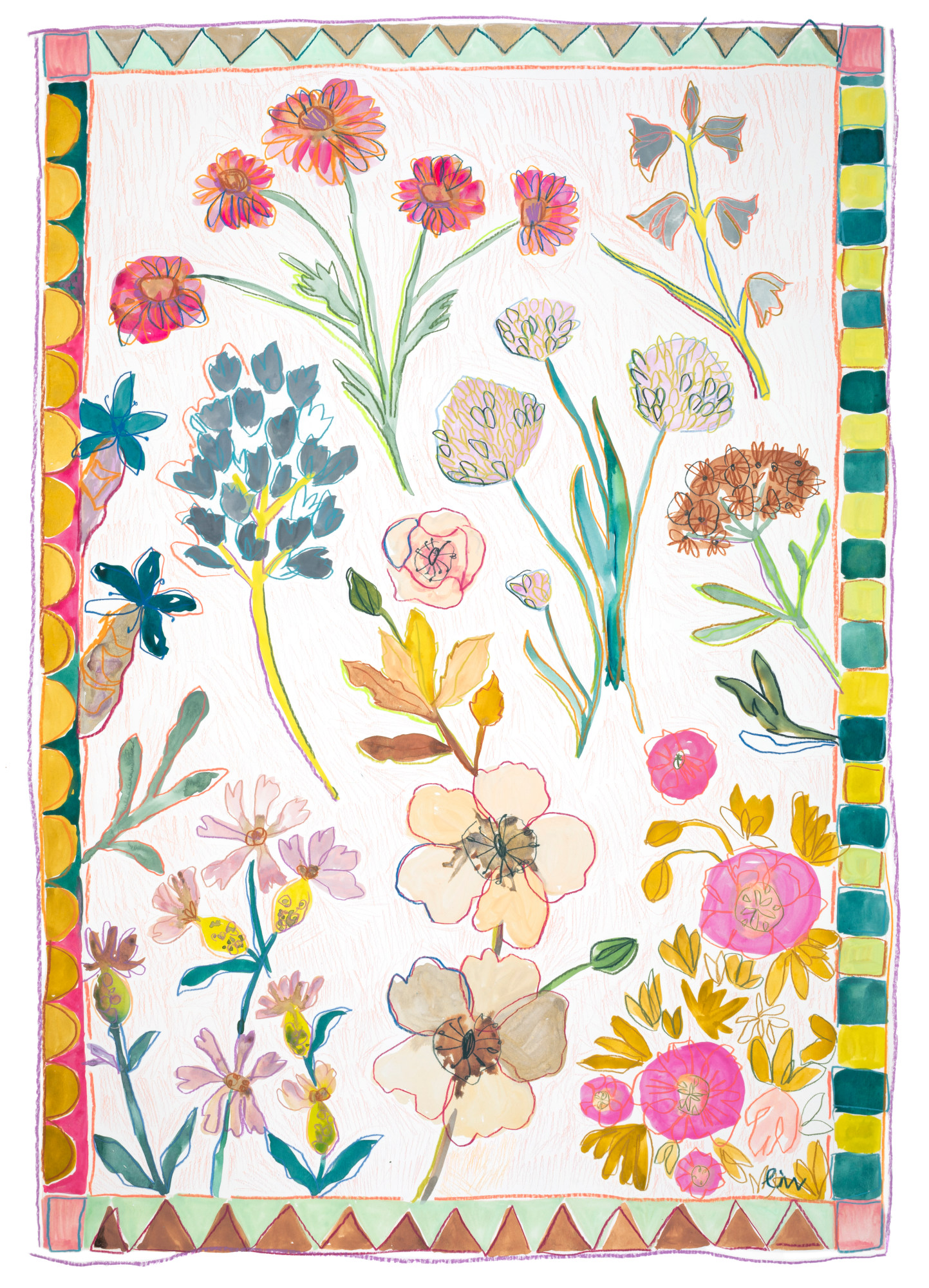 Acryla gouache, ink and pencil on paper