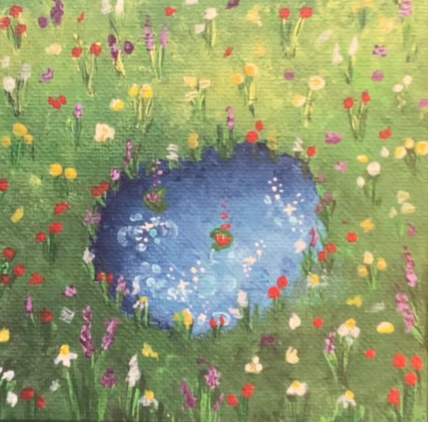 Tiny blooms drift on the pond’s still surface, carrying quiet secrets of spring.