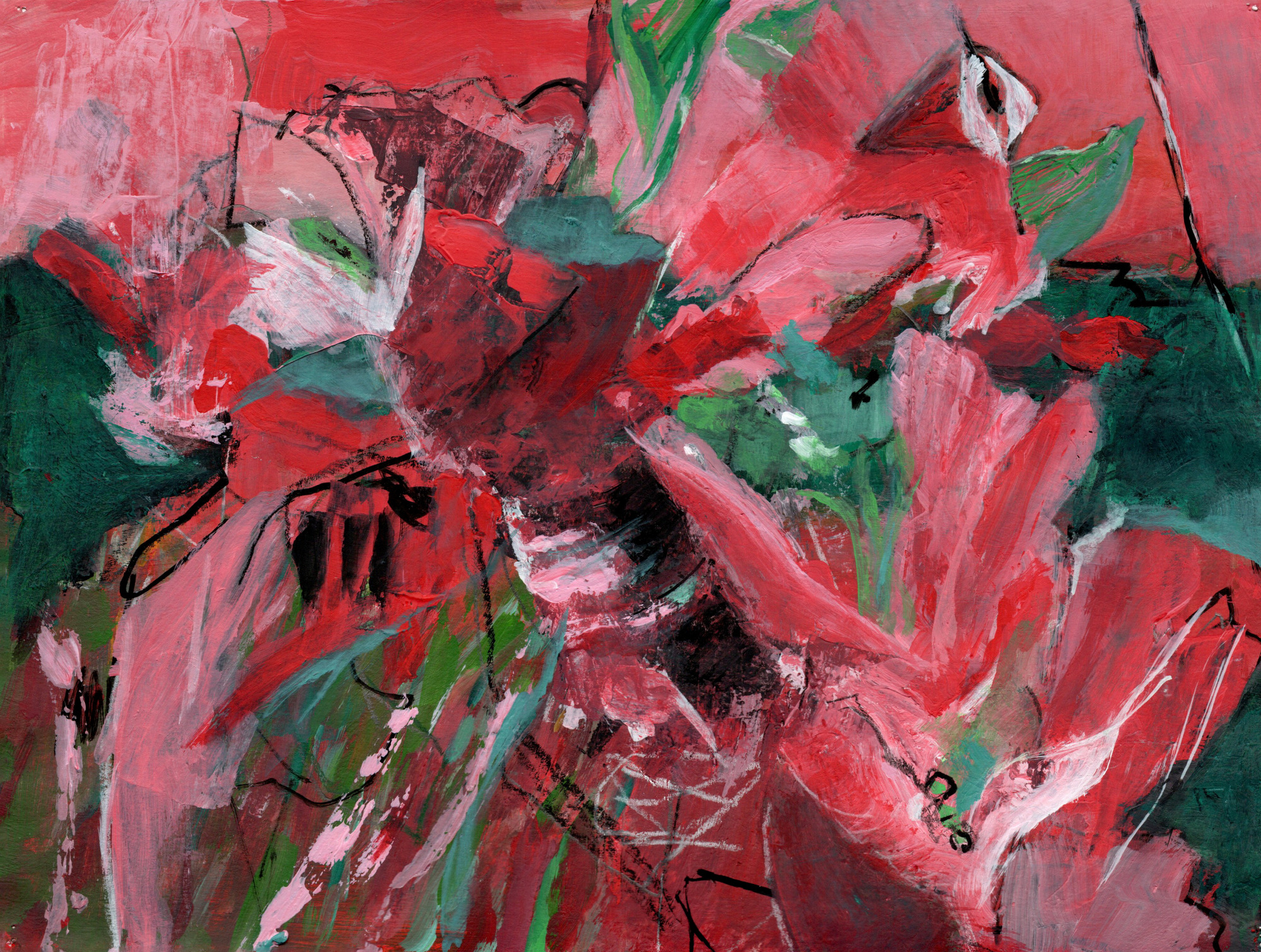 acrylic, marker & wax pencil on paper
