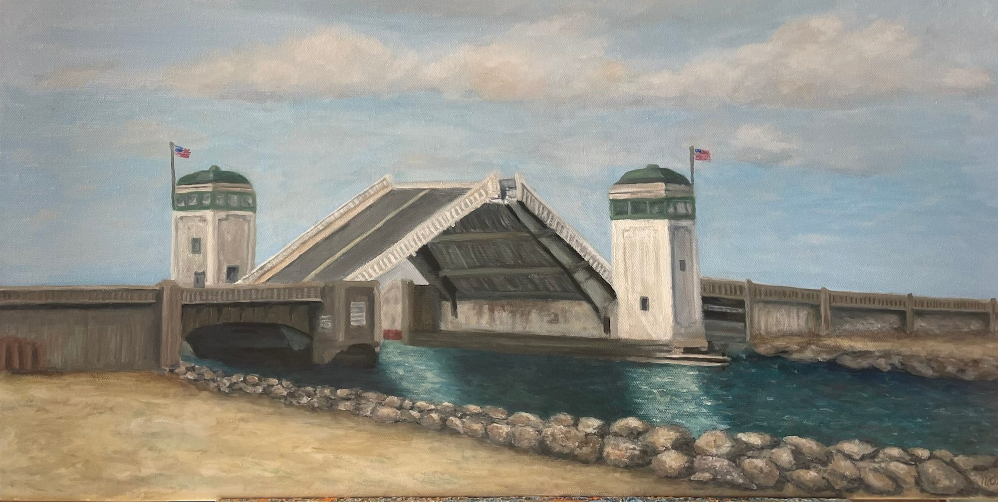 The Belmar Natural Beach Area provides an excellent advantage point to view the bridge. Many times there are fisherman on the rocks, at all times of the year. This is a fairly busy inlet no matter the season so you will see many boats going in and out.