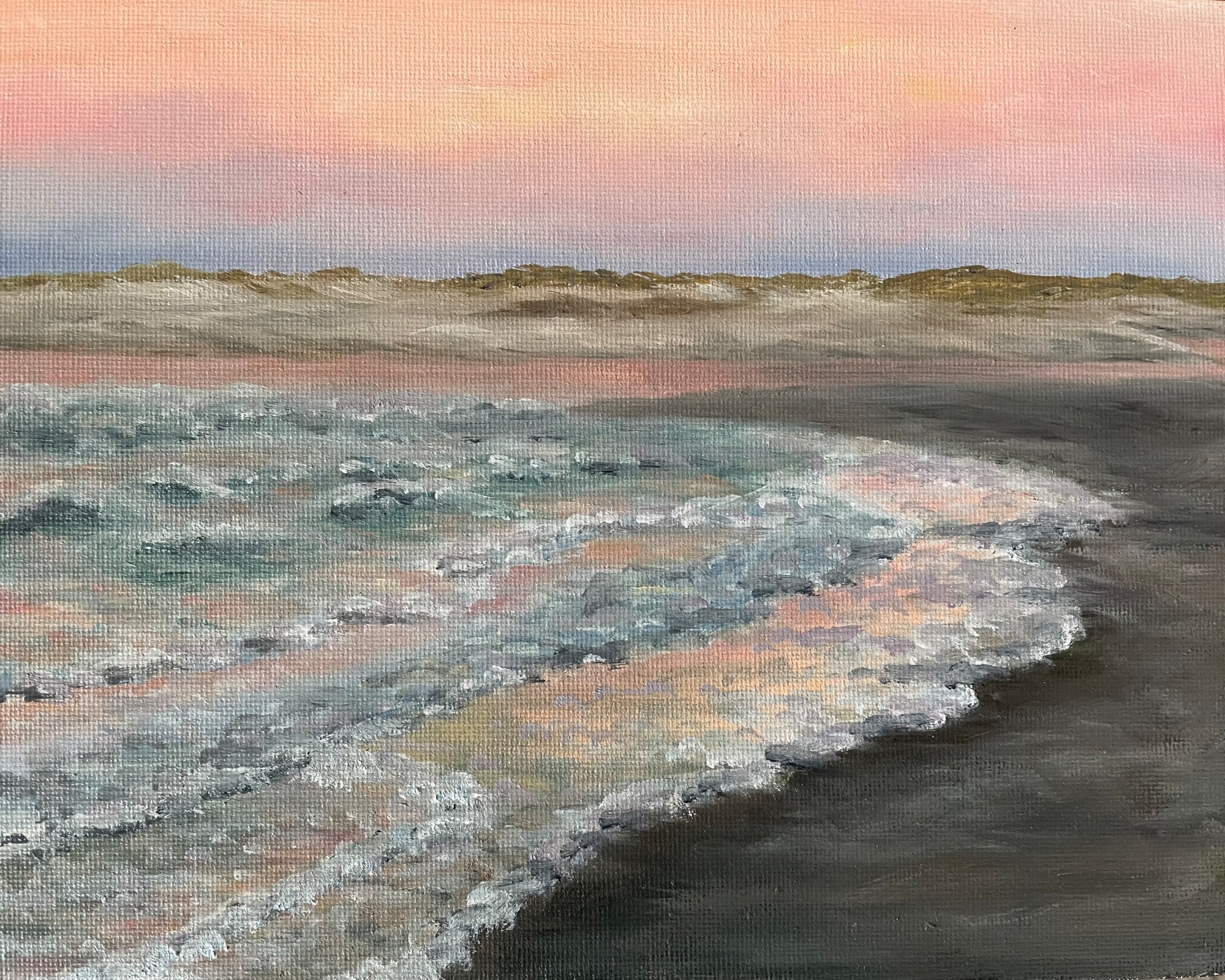 On this particular evening on Sandy Hook, the sunset produced these amazing shades of pink tingled with purple. The sun glistened over the water with the water troughs ranging for a deep gray with a hint of purple. The crests picked up the beautiful pink colors.