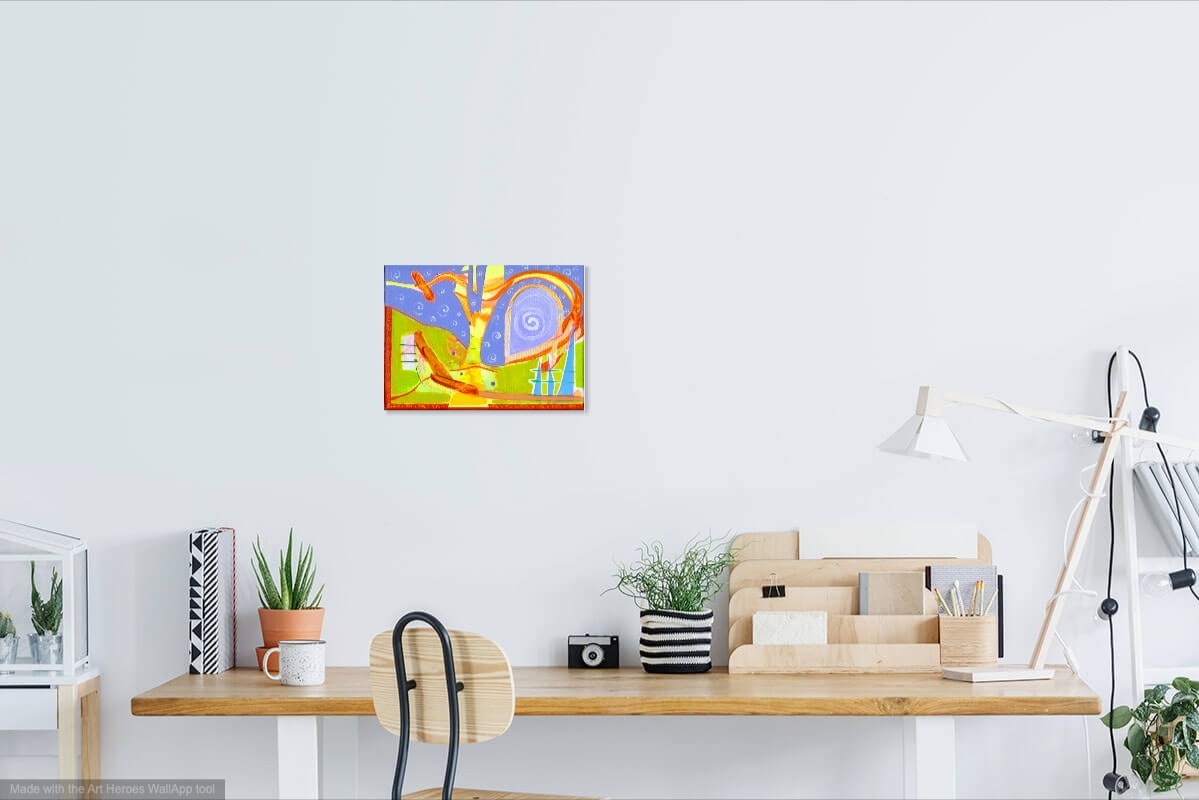 I wanted to make a series of small paintings that would hang well together. After the first painting, the color scheme took a different route. Numbers two, three, and four share a similar color story. Numbers three and four follow an almost identical design style along with the color story.