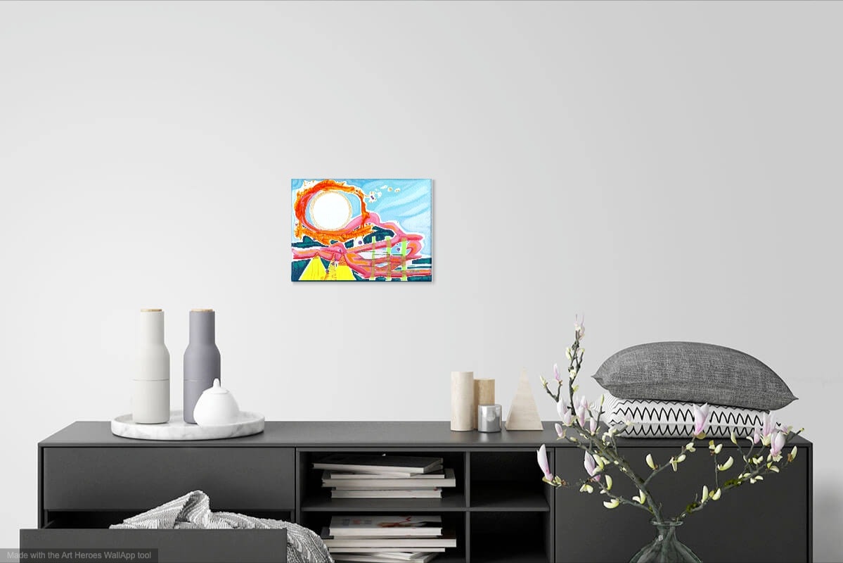 This series consists of four small paintings on gallery-wrapped canvas measuring 9 x 12 x 0.5 inches. The media used was acrylic paint and paper. I did two series on 9 x 12 inch paper of three paintings each and wanted to try it with gallery-wrapped canvas.