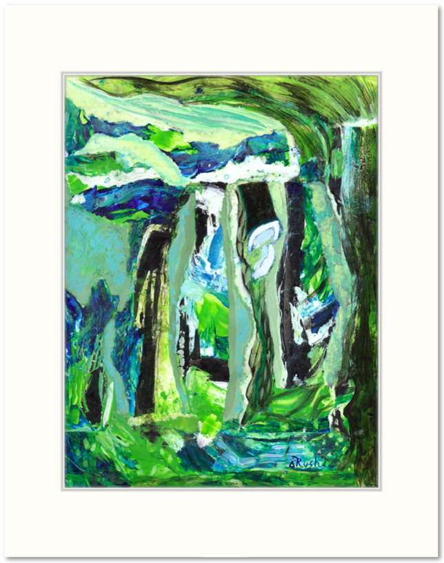 I'm still working with my new collage technique to capture the mood and essence of the first one. This is #4. Working with blue, green, black, and white.