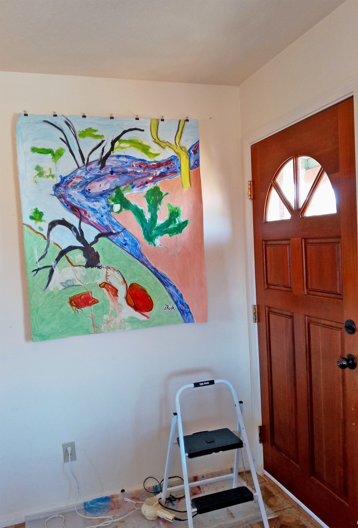 Verde River at Copper Canyon Trailhead by Mary Rush  Image: Copper Canyon Stream, 48 x 41.25 inches, Mixed Media Painting on Canvas