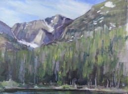 I stood on a rock at the water's edge to paint this scene. I made a larger painting of the same view.