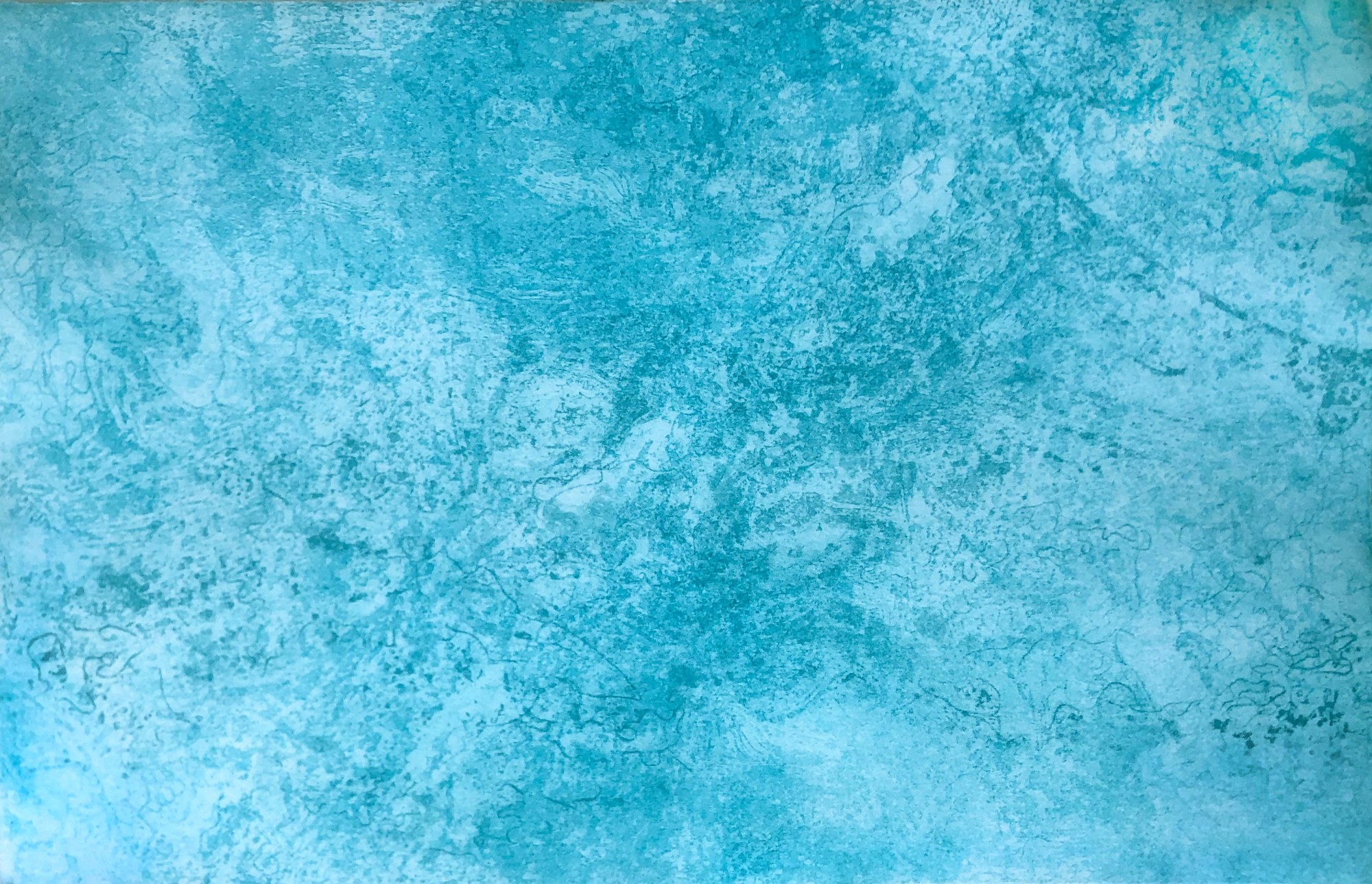 I really love this little test print! This is a little bleed trim print (meaning there are no white paper margins) made by running the paper and plate through the press multiple times, moving the paper around each time so different areas of the image transferred to the paper. This was made while I was finding the right pressure to use on a press at Graphic Arts Workshop in March 2023.