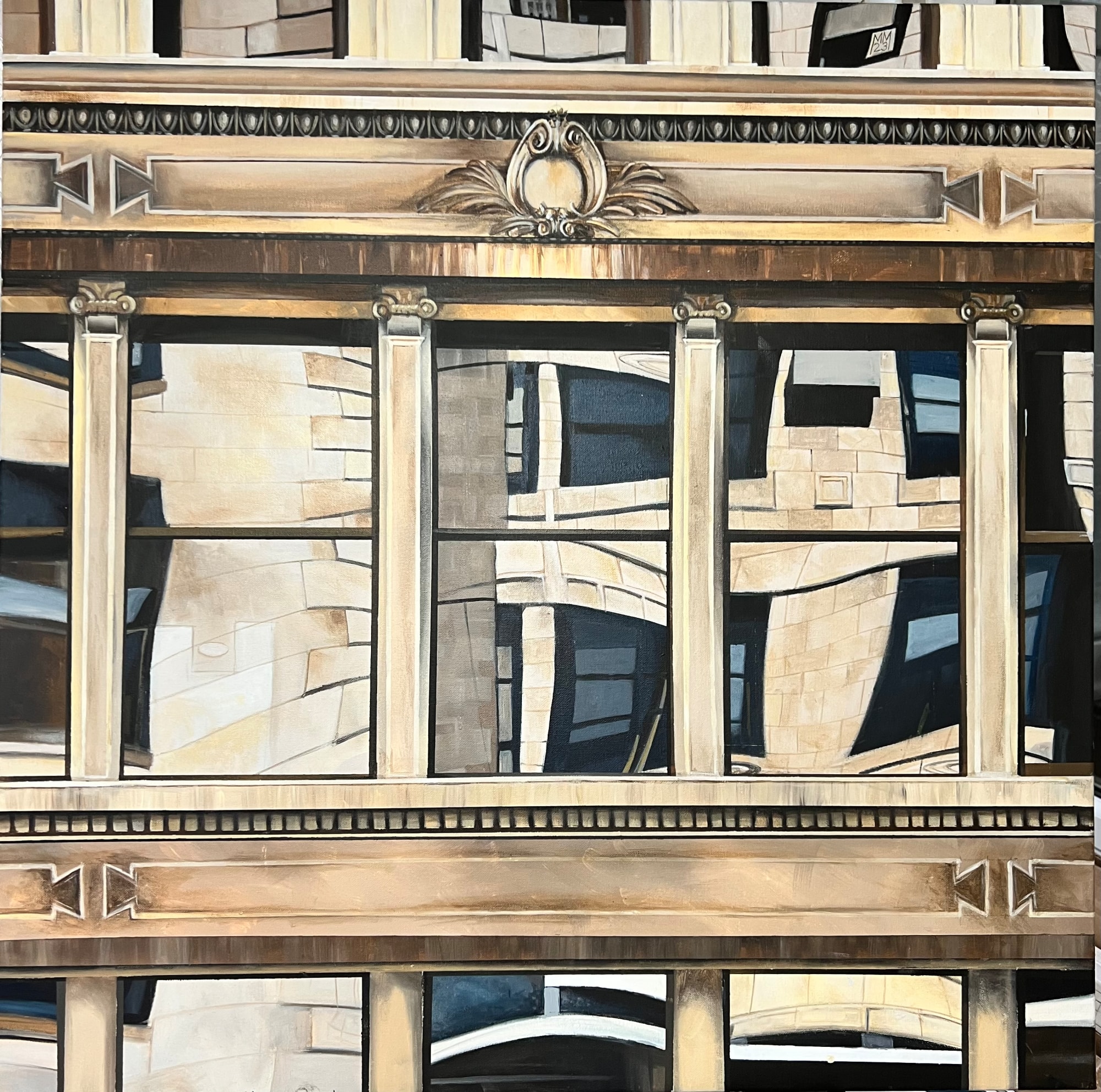 Michael is a British painter based in Hampshire whose work explores memory, perception, and disorientation through reflective urban environments.
