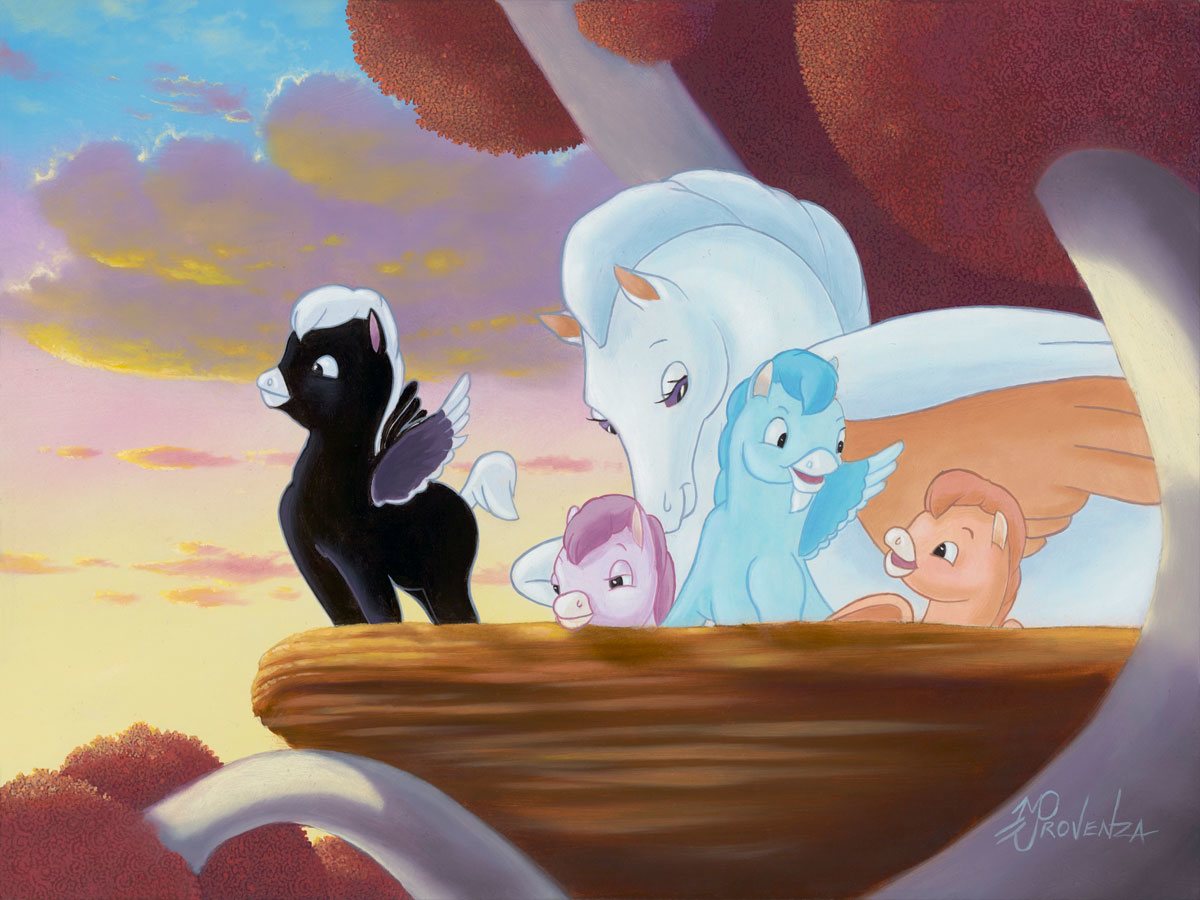 “This little Pegasus family is enjoying a beautiful morning in their cozy little home.” — Michael Provenza, Artist