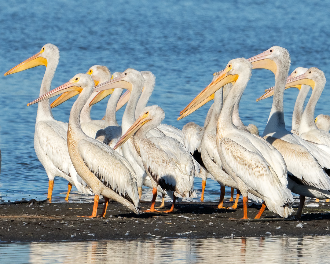 A Gathering of Pelicans was photographed shortly after dawn at the Davis Wetlands in August 2021. Rounding a corner of the property track I came across a large pond, with dozens of pelicans gathered along a narrow spit of dirt. What were they doing? Why were they all there? It seemed to me that, like me, they were enjoying a beautiful morning and one another’s company.