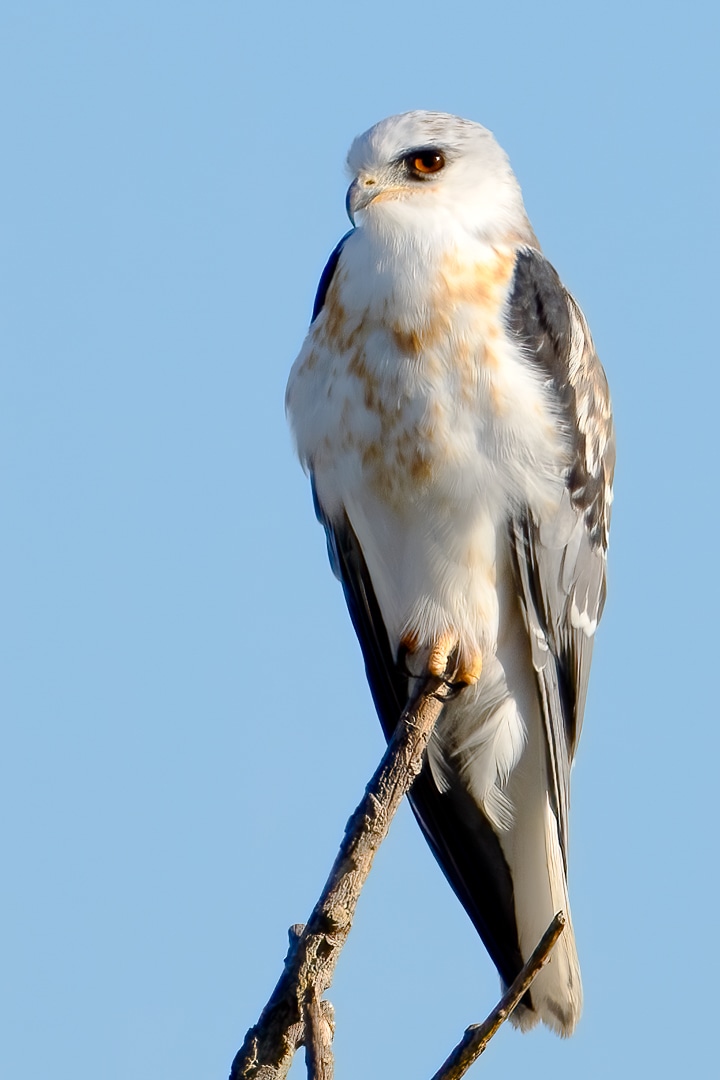Portrait of a White-tailed Kite was photographed in August 2021 at the Davis Wetlands. I had seen this glorious young bird on numerous visits, but he had always quickly flown away. But just after dawn on this beautiful morning he paused and gazed at me just long enough for me to capture a portrait. “Here’s looking at you,” he seemed to say, because indeed, he was.