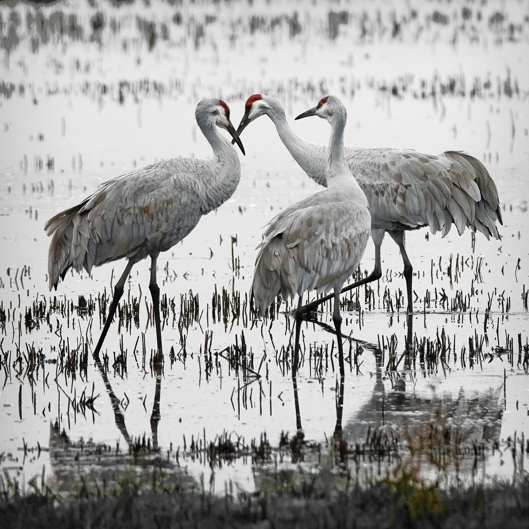 Sandhill Crane Family was photographed in December 2018 at Staten Island near Lodi.I love to visit that area on winter mornings to see migrating cranes and other birds. While it is always grand to make a portrait, the opportunity to observe the intimate expressions of these marvelous birds goes beyond that to an experience that is spiritually uplifting.