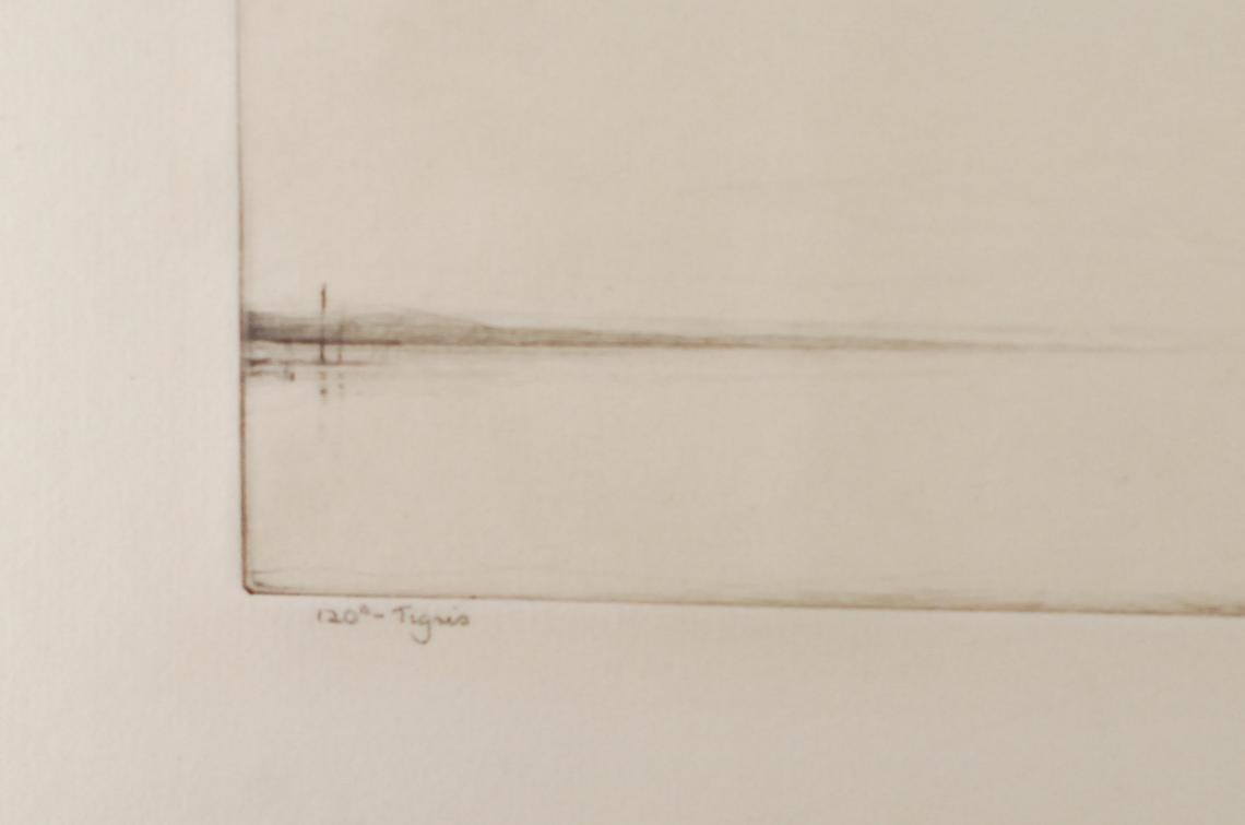 120º Tigris, a drypoint etching on moderately thick, moderately textured, blued white laid paper.