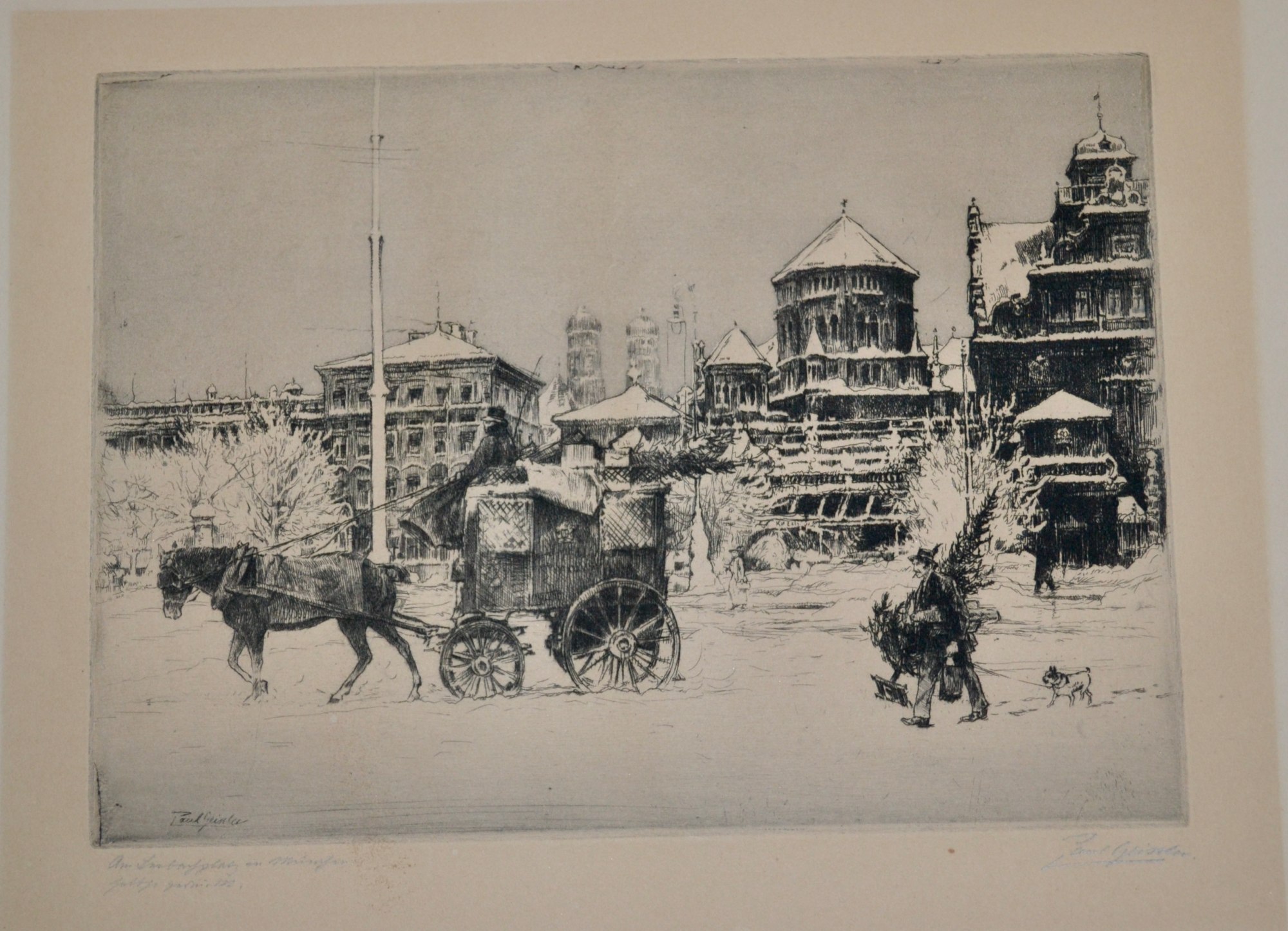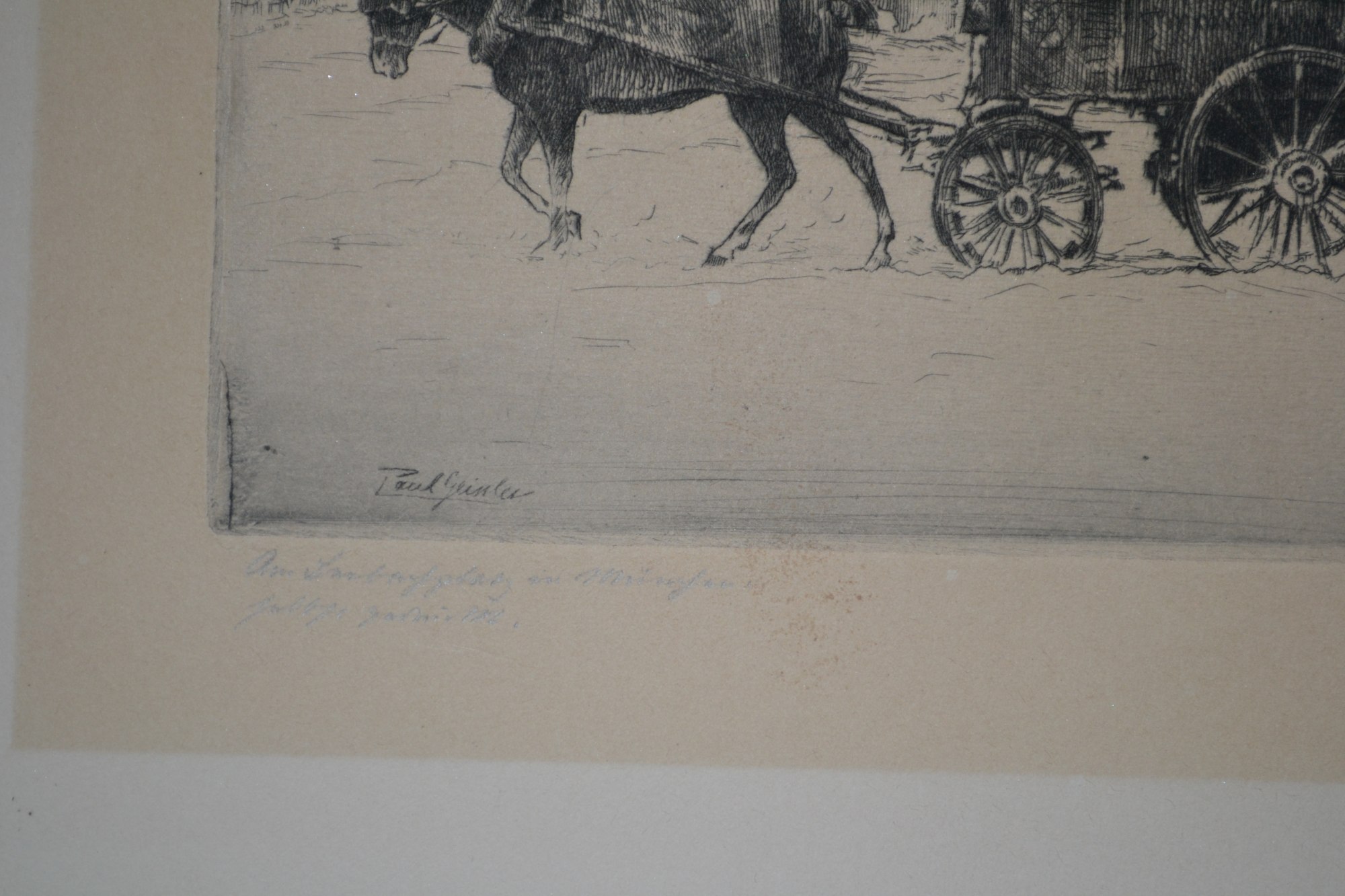 • Signature: Signed in pencil "Paul Geissler" in lower right-hand corner. Also signed in the plate in the lower left-hand corner of the image. Titled in pencil in German "Am ..." - illegible writing. The number 310 is on the lower left side of the paper and 8.00 is in the lower right-hand corner of the paper.