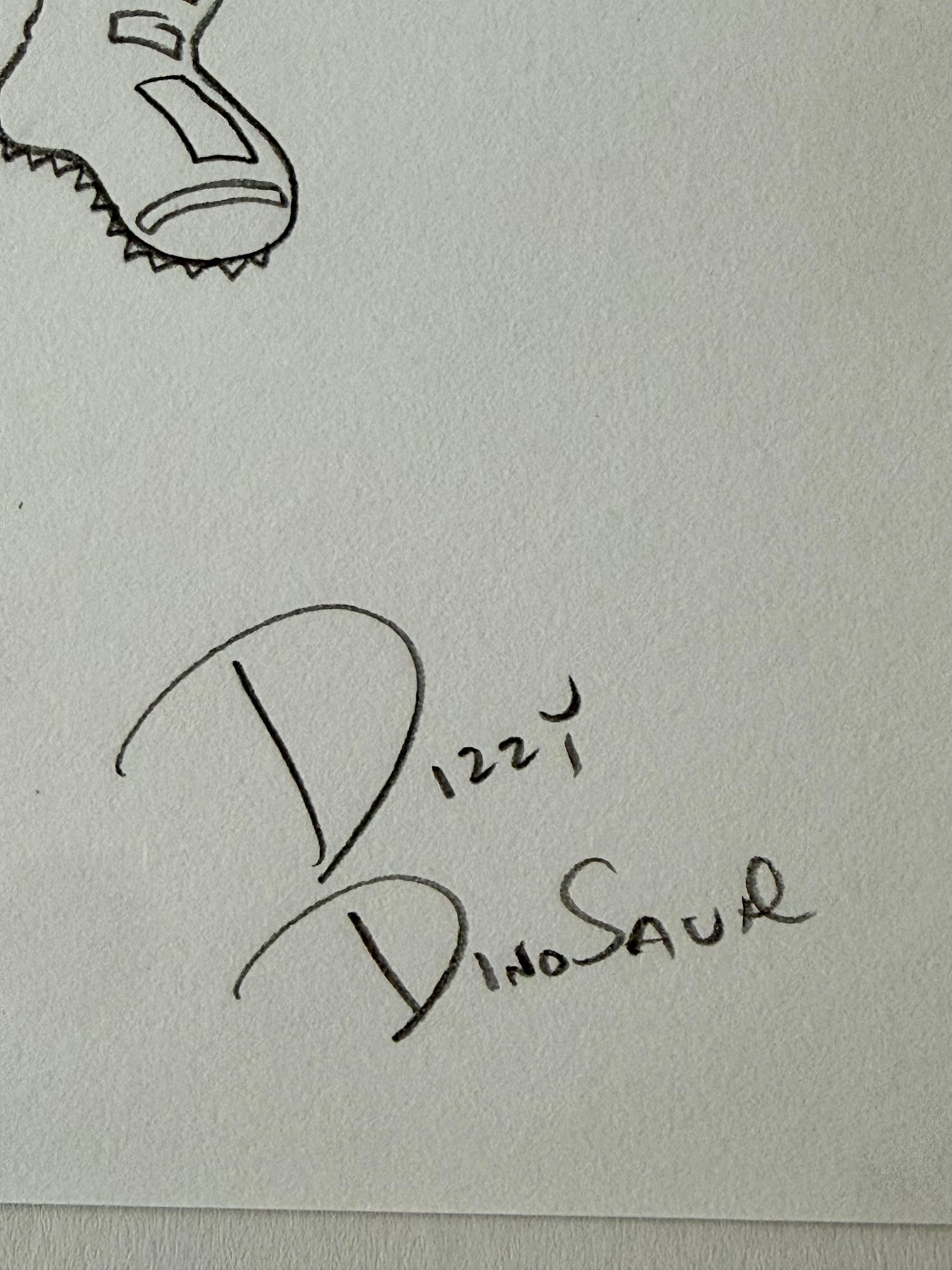 - Signature: Titled in lower right-hand corner "Dizzy Dinosaur"