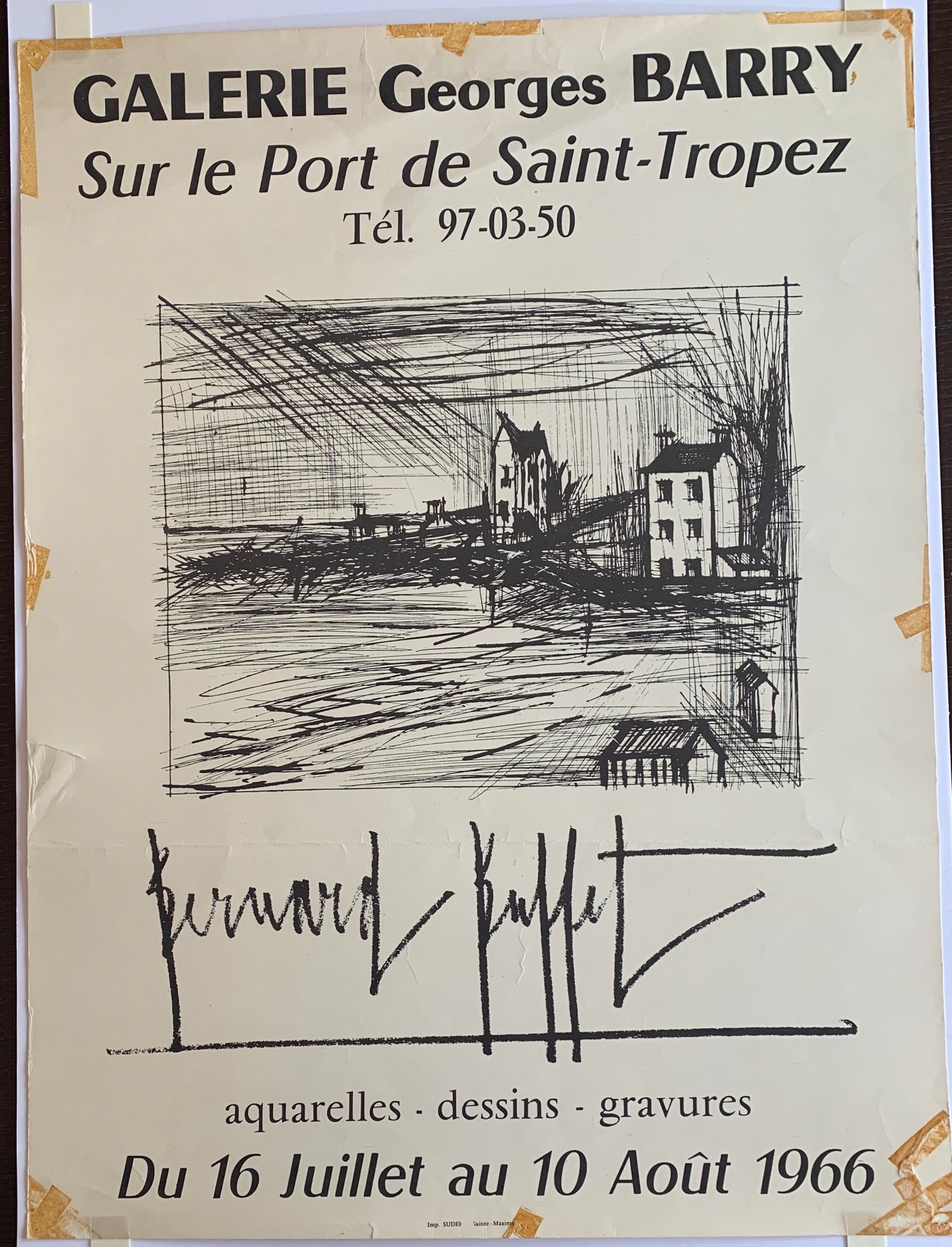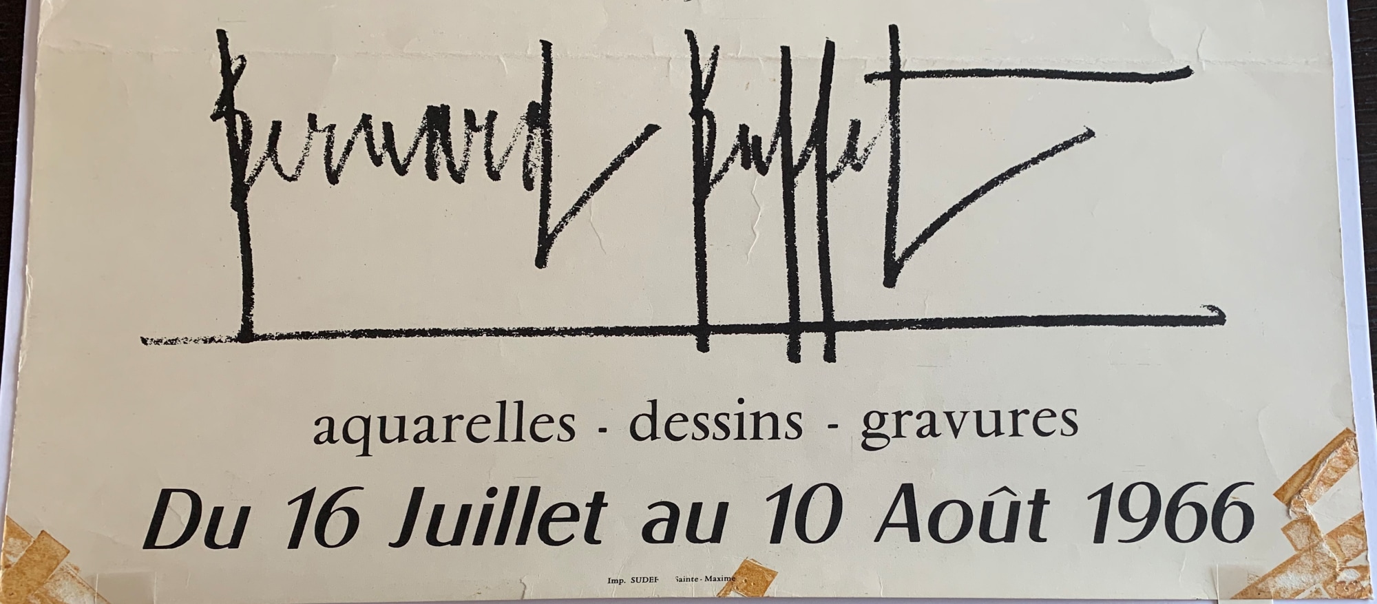 Original exhibition poster for a Bernard Buffet show at the Galerie Georges Barry in Saint-Tropez in August 1966. Original poster printed in the SUDEF workshop in Sainte-Maxime.