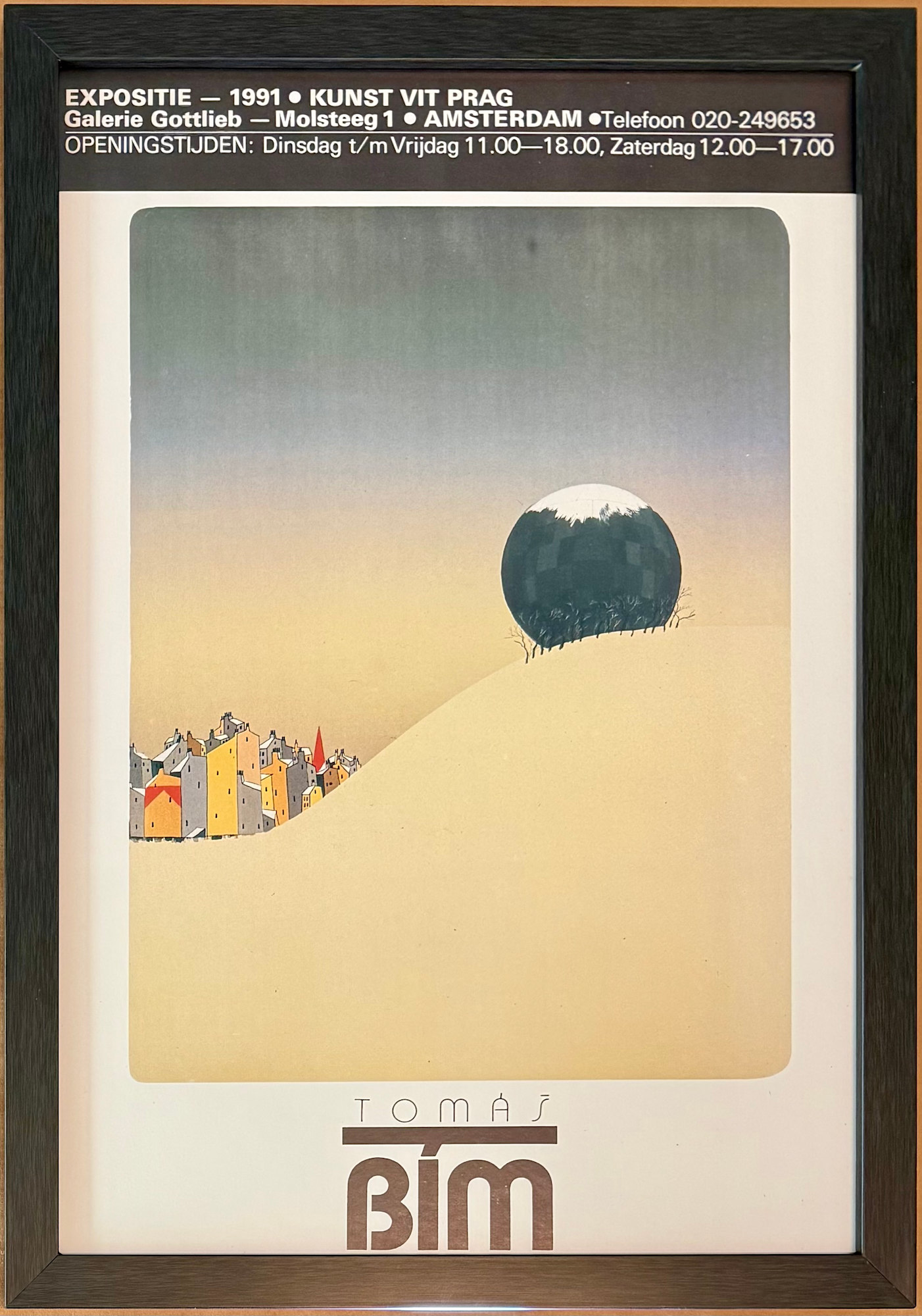 Original exhibition poster for a Tomas Bim exhibition at the Galerie Gottlieb in Amsterdam in 1991. Printer unknown. Galerie Gottlieb appears to no longer be in existence. Poster features Bim’s "Liben Gas Reservoir" from 1990.