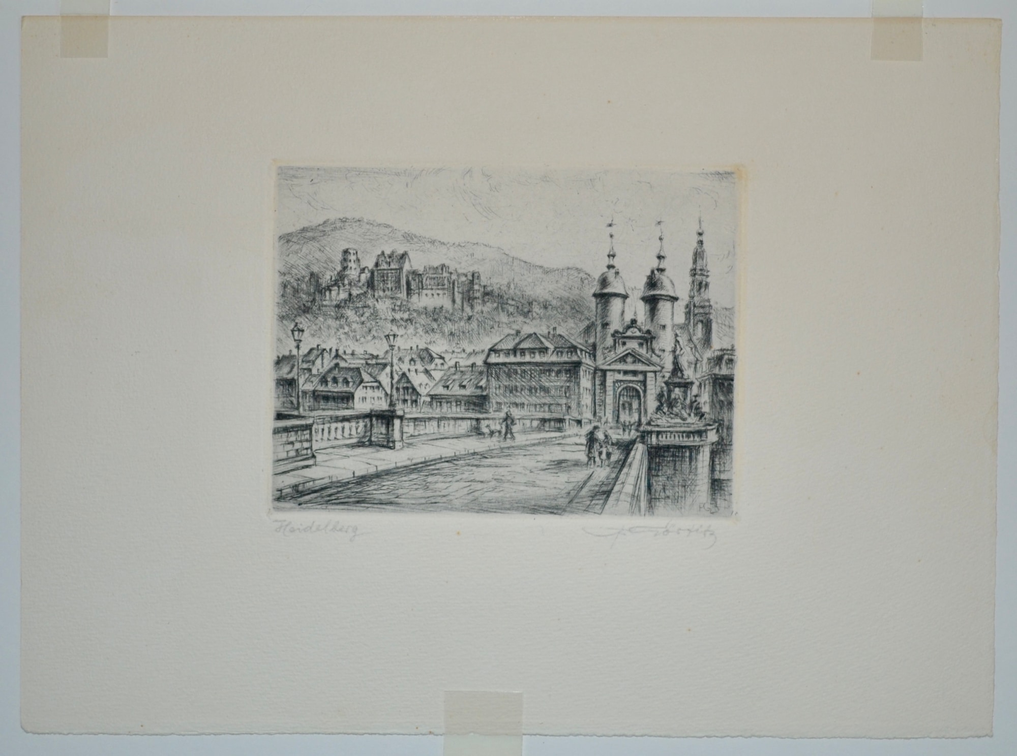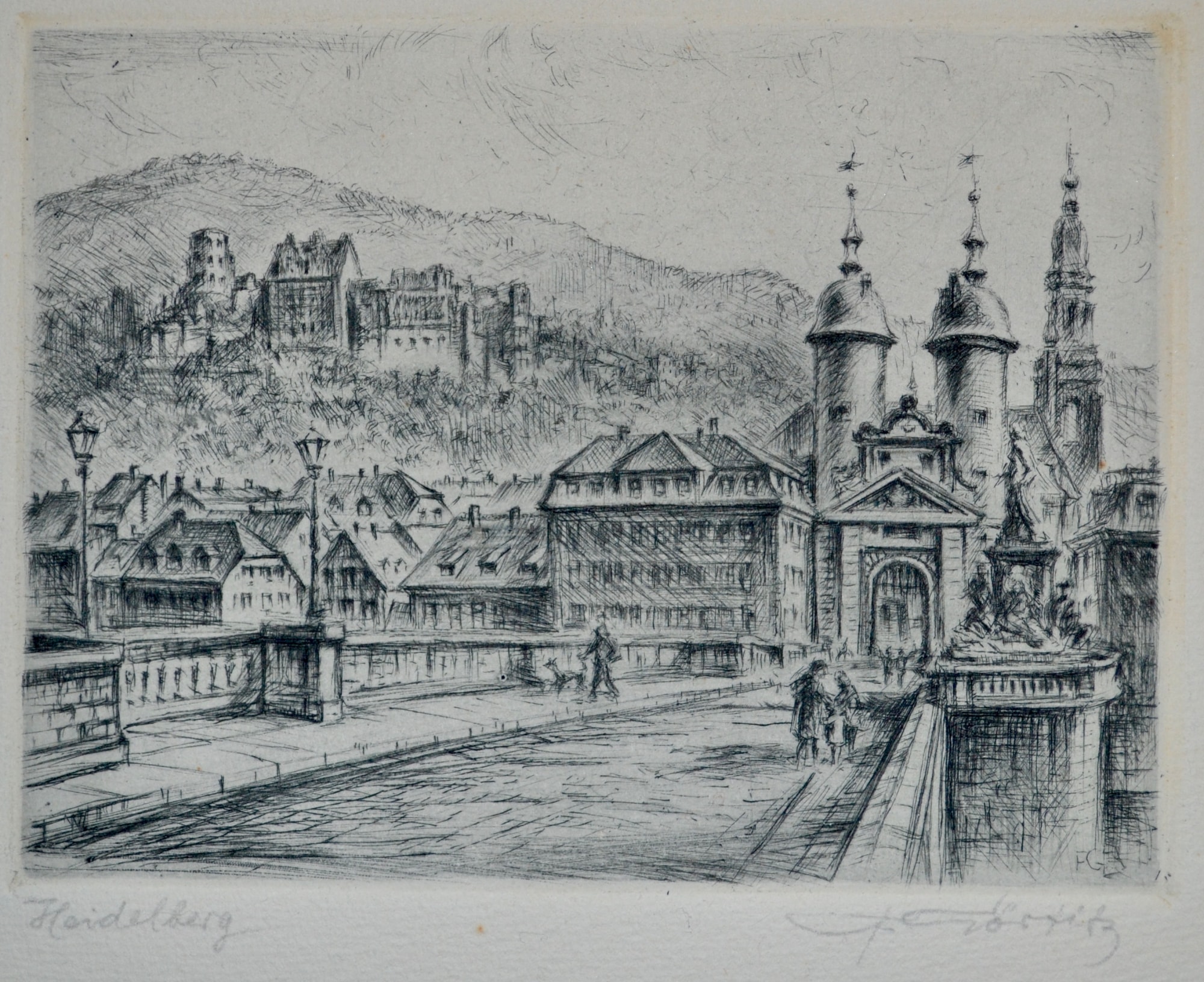 - Signature: Signed in pencil "F. Gortitz" lower right-hand corner. Titled in pencil "Heidelberg" in lower left-hand corner. Initials "FG" are also in the plate, above the penciled signature.