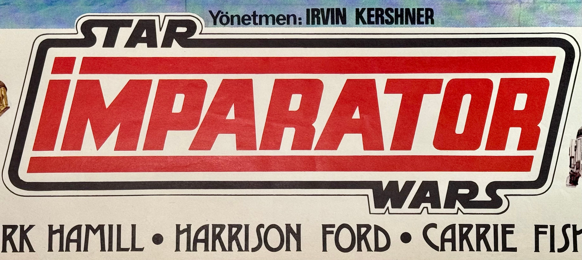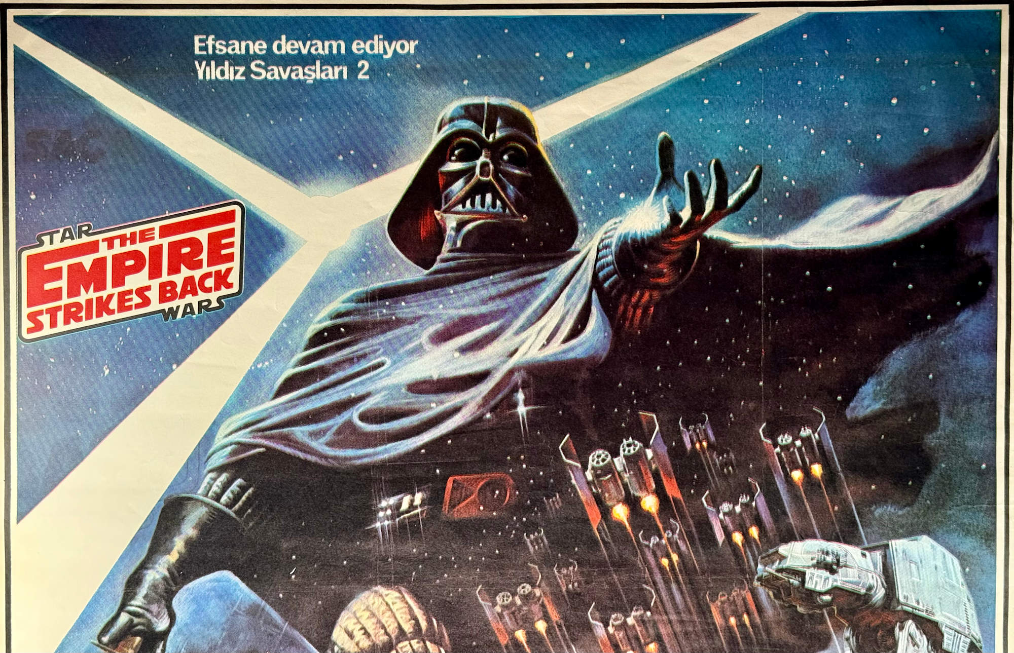 First Release Turkish one sheet for the movie The Empire Strikes Back from 1983. The poster shows all main characters and the awesome AT-AT walkers and the Tauntaun from the planet Hoth.