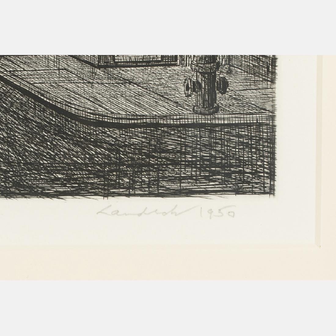 - Signature: Signed and dated in pencil "Landeck 1950" lower right-hand corner. Inscribed in pencil "Ed. 100" lower left-hand corner.