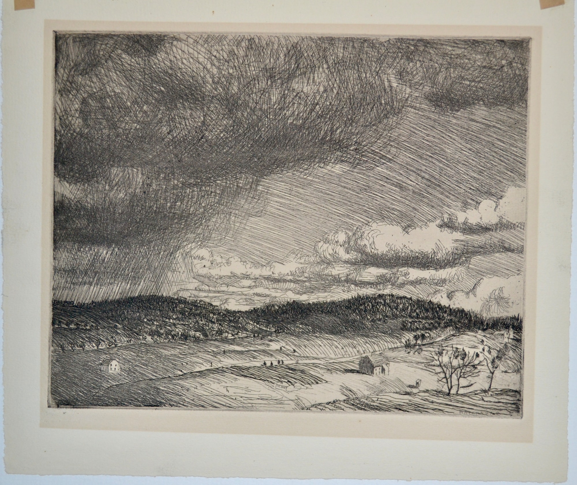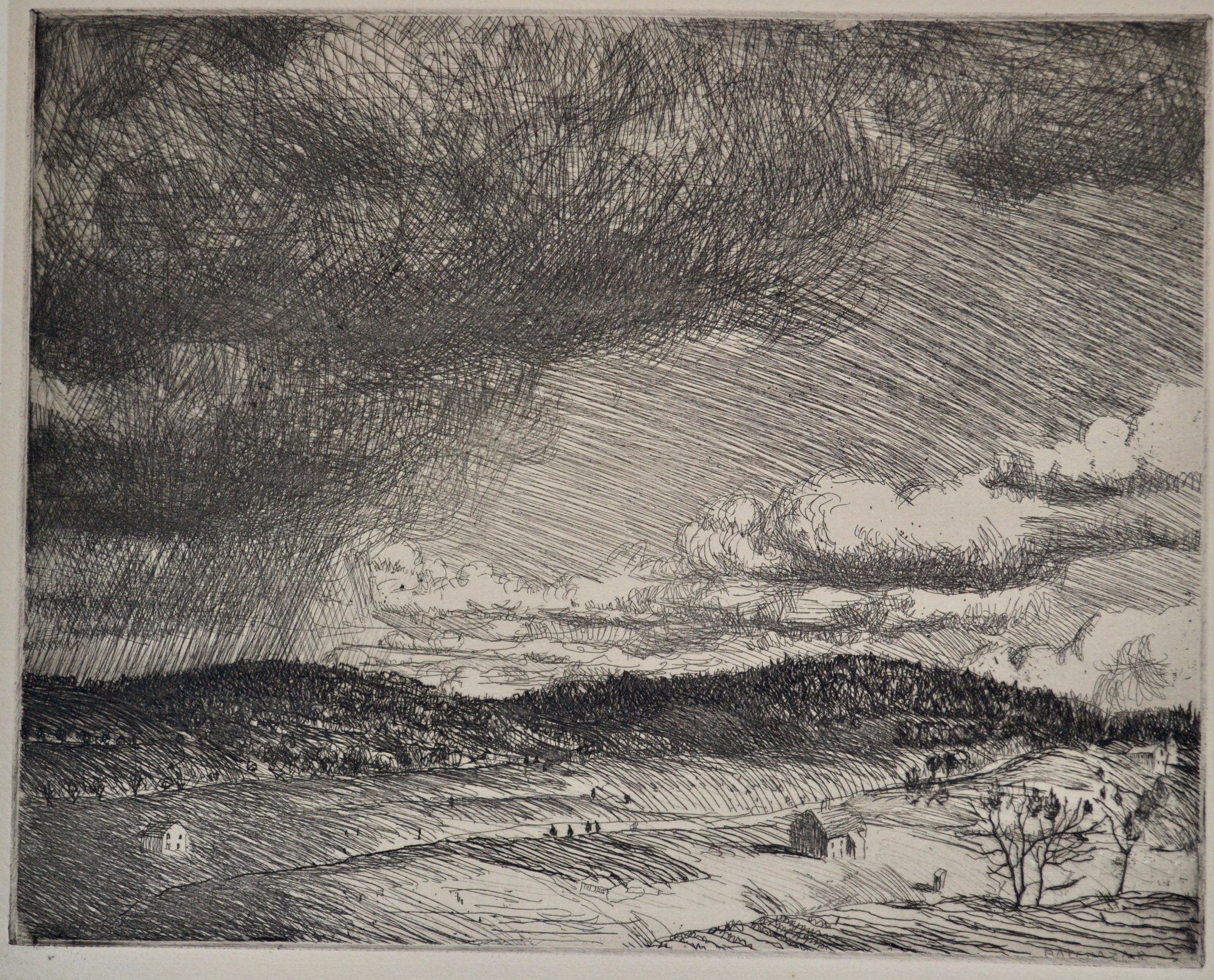 An etching depicting an approaching storm.