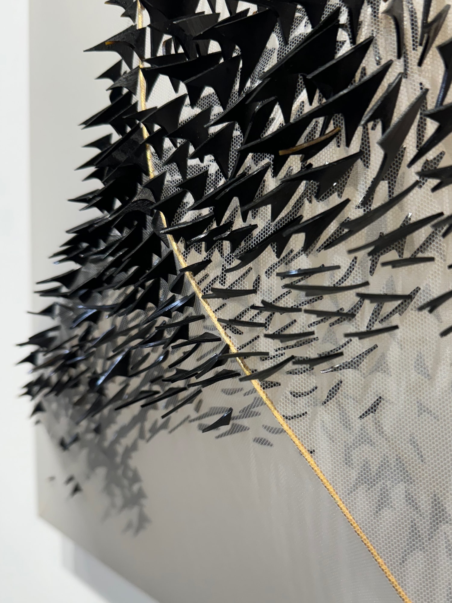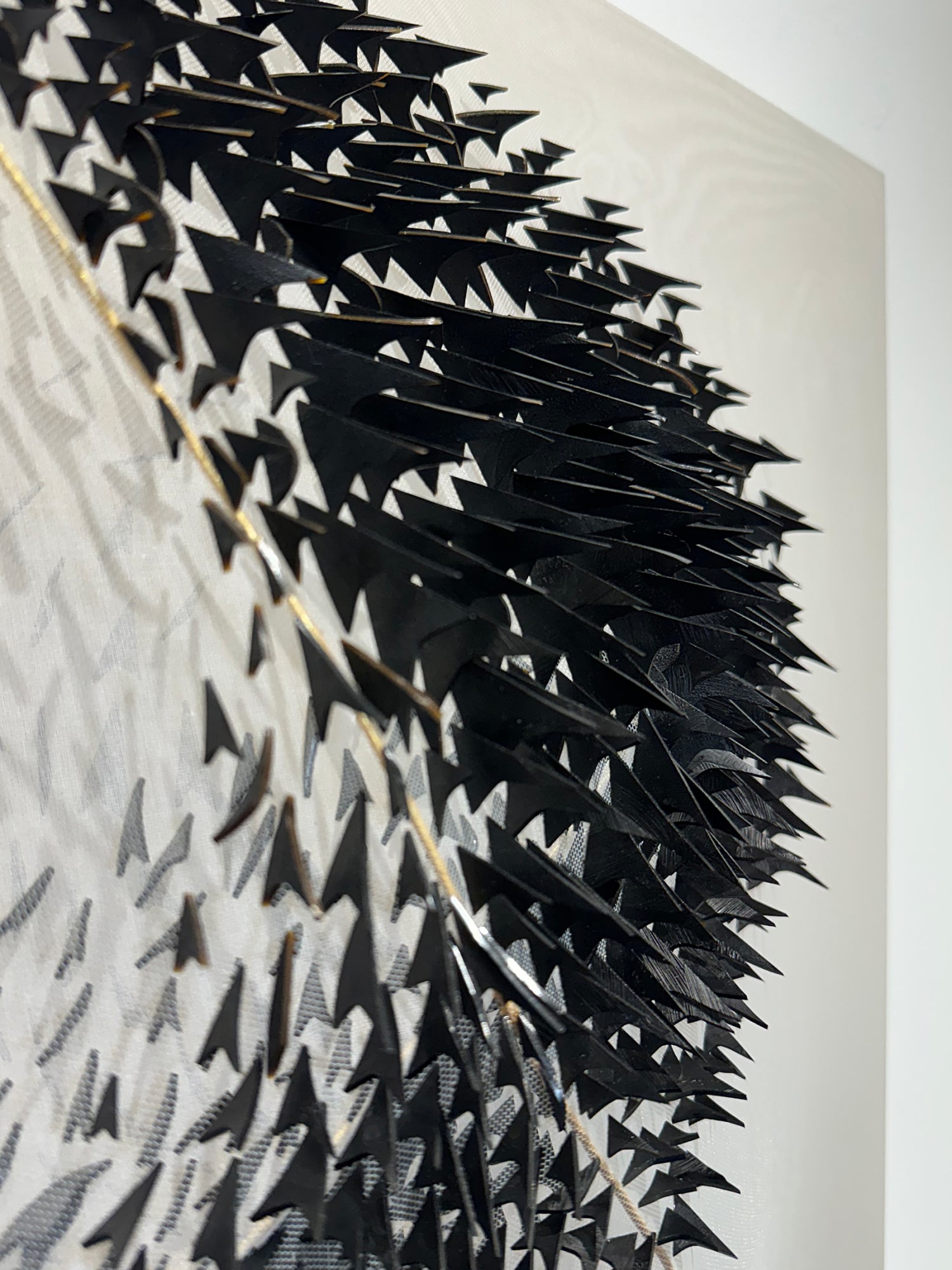 Acrylic, thermoplastic, wire, tulle, cotton organdy on panel