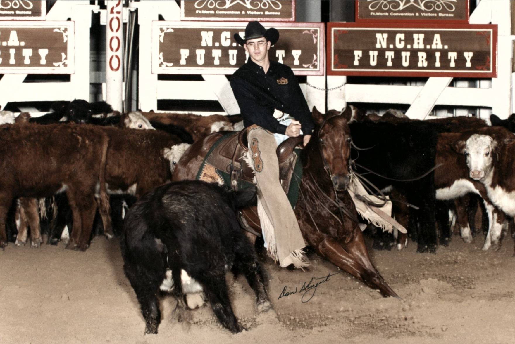 Dustin Adams showing at the 2000 NCHA Futurity.