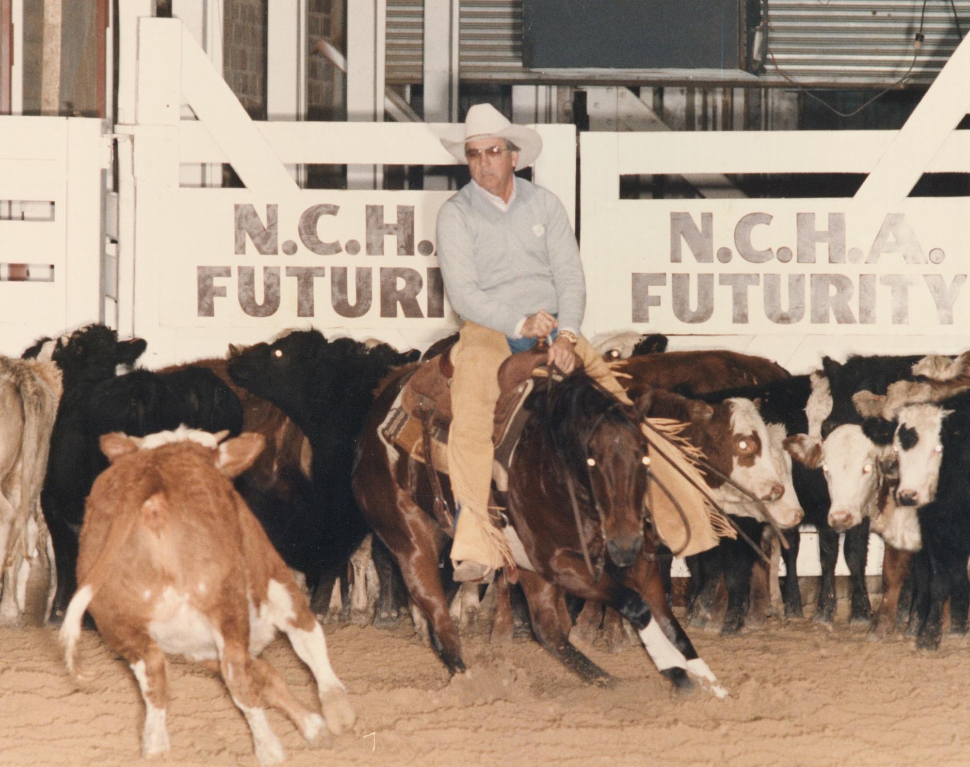 Hug Me Dry shown by M.L. Chartier at the 1985 NCHA Futurity, Non-Pro.