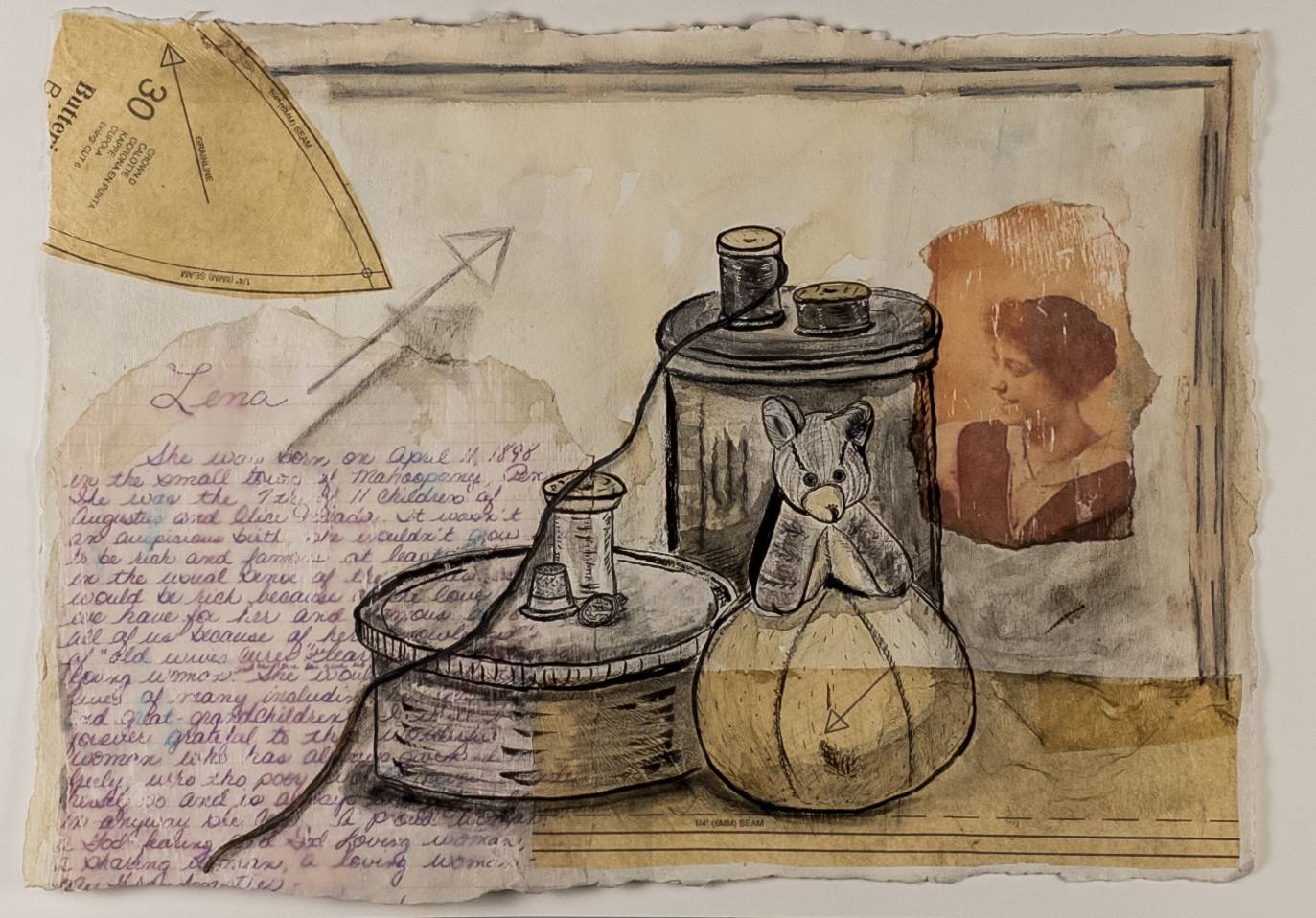 This piece is part of a collection of works where I am exploring my connection with female ancestors, many of whom have a connection with sewing and thread.