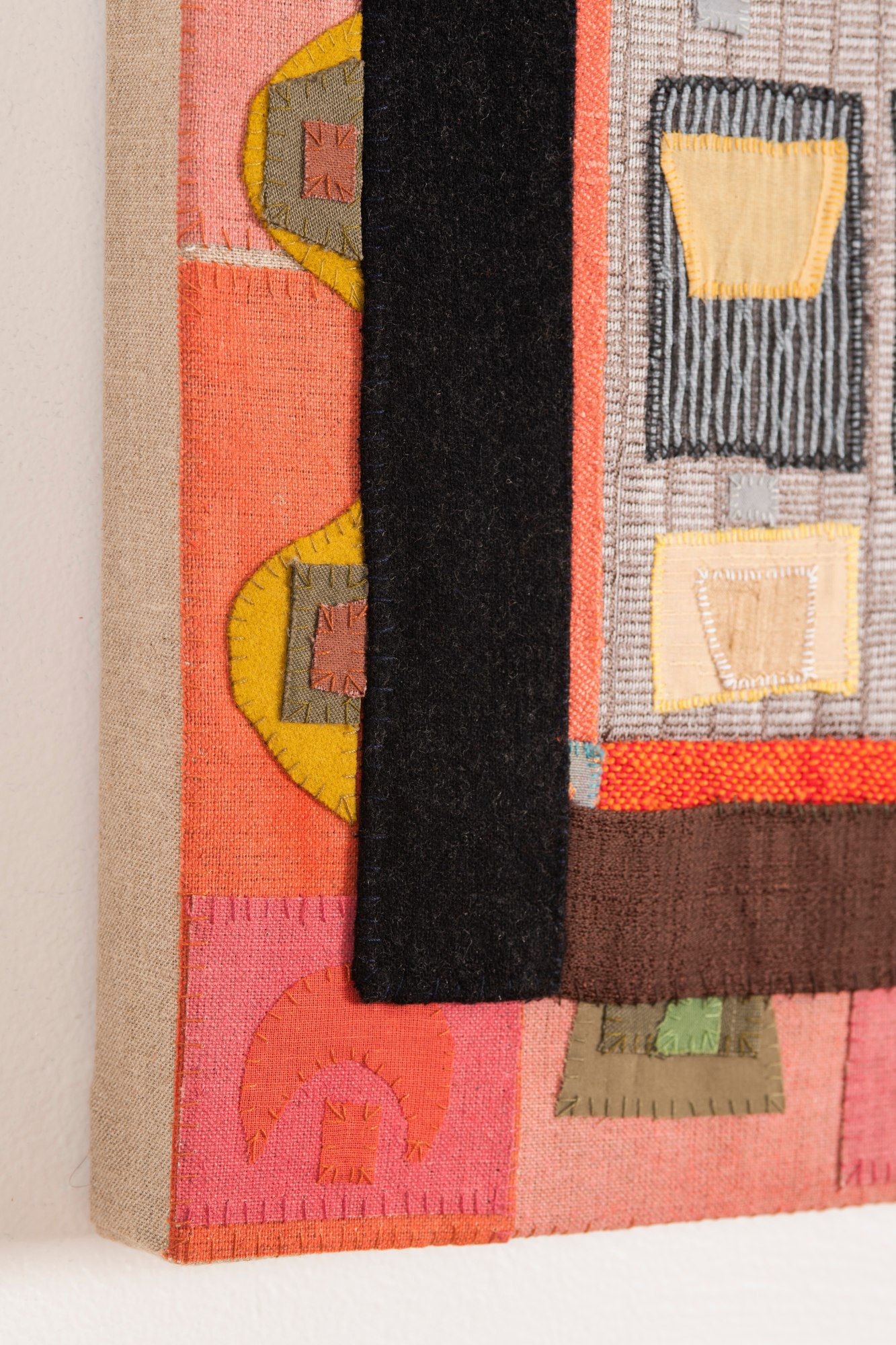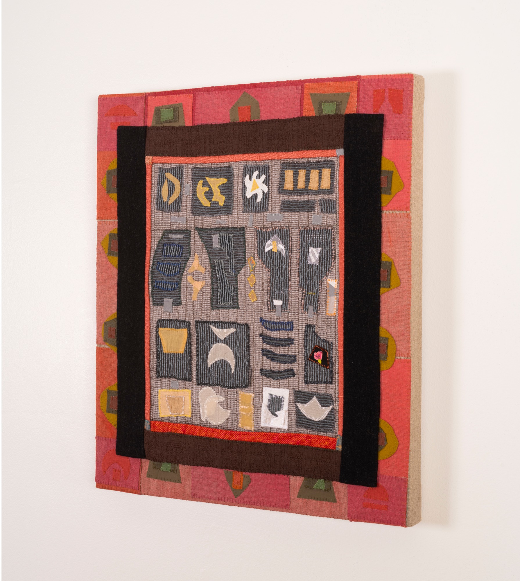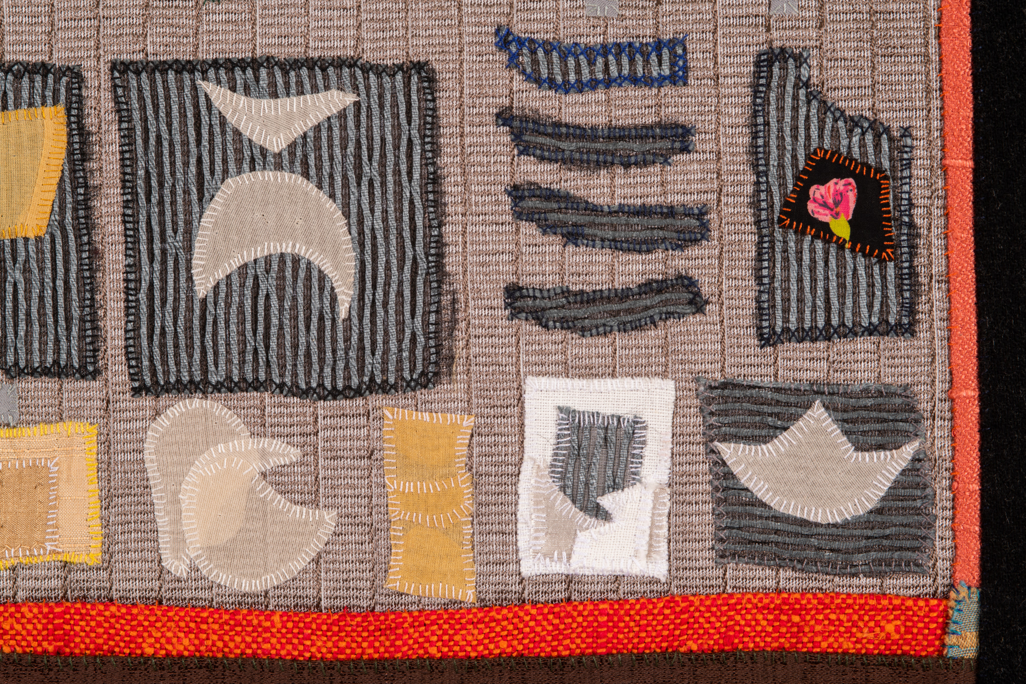 Handsewn fabric collage with acrylic paint